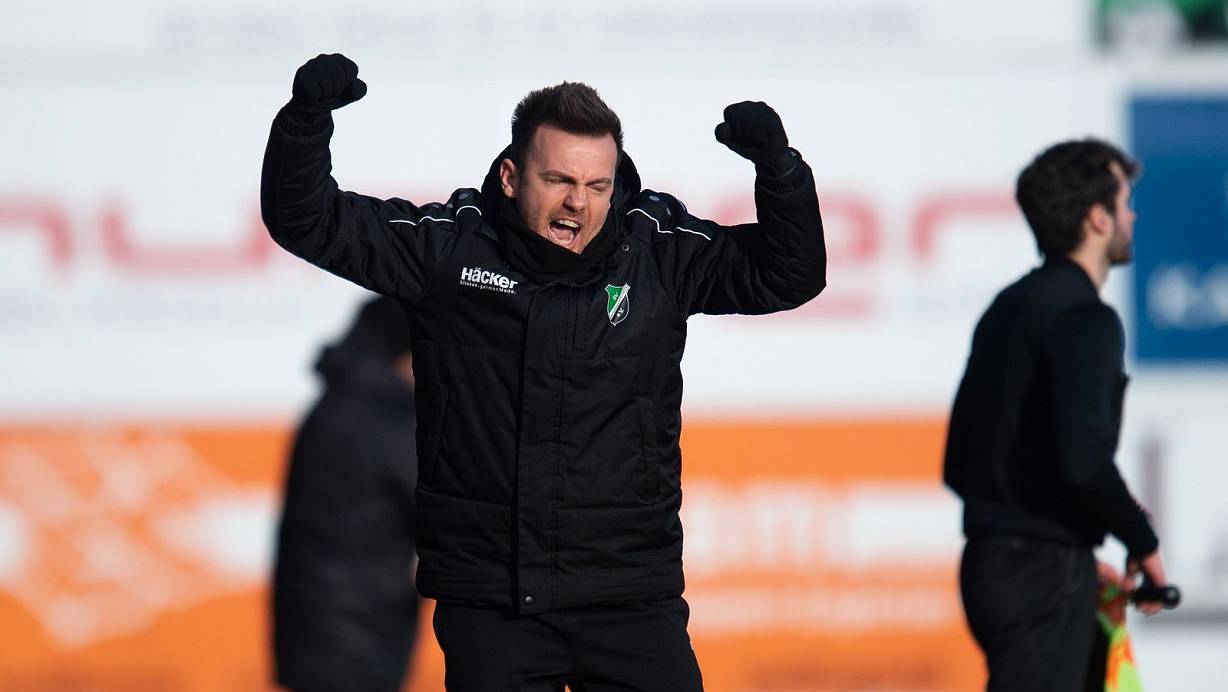 Dieses Bild wird man vermissen: Enrico Maaßen als jubelnder Trainer des SV Rödinghausen. | © Noah Wedel