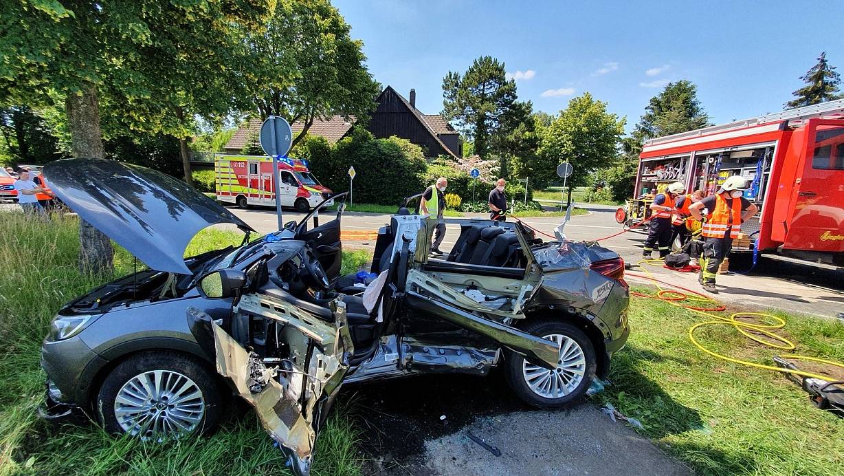 Unfall auf Straßenkreuzung in Rödinghausen. An zwei Autos entstand Totalschaden, eine Person wird schwer verletzt. Grund für den Unfall ist wohl fehlende Aufmerksamkeit gewesen.