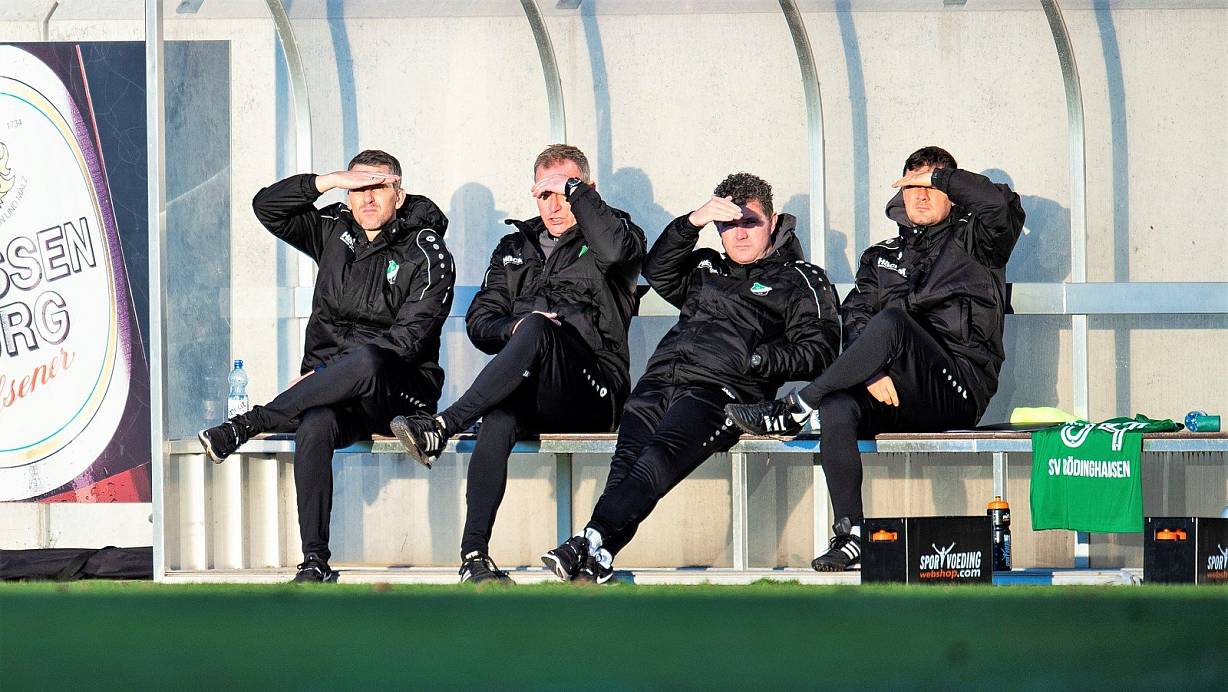 Wohin führt der eingeschlagene Weg: Das Trainerteam des SV Rödinghausen mit Nils Drube (v. l.), Robert Roelofsen, Roy Elferink und Dennis Freund. | © Noah Wedel