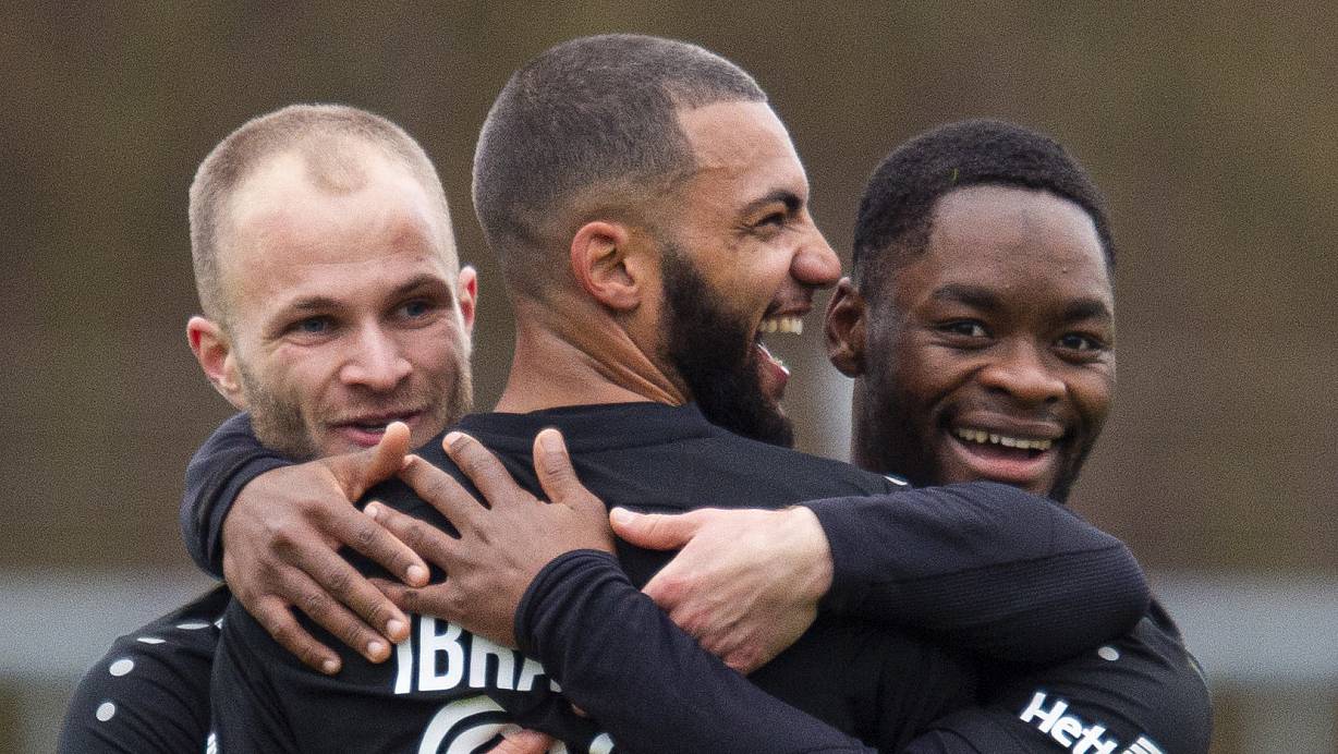 Vor allem im eigenen Stadion hatten die Rödinghauser mit Patrick Kurzen (v. l.), Yassin Ibrahim und Ba-Muaka Simakala Grund zum Jubel. | © Noah Wedel