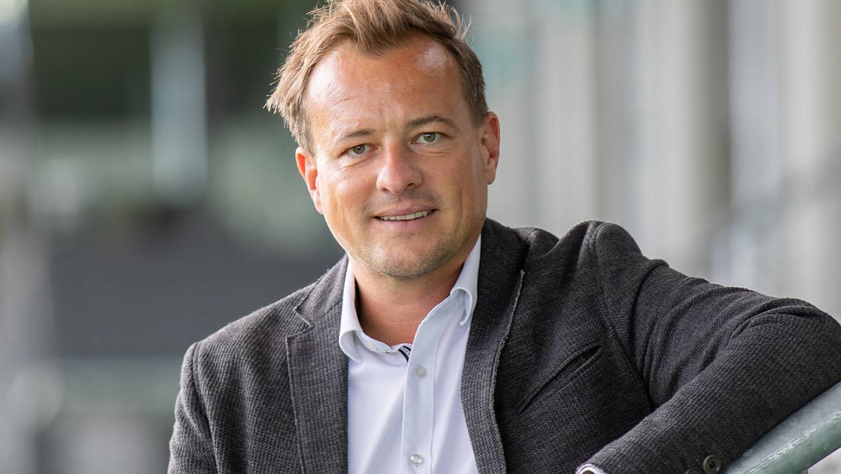 Kevin Lucius auf der Tribüne des Häcker-Wiehenstadions. Beim SV Rödinghausen war der 40-Jährige vor einigen Jahren auch als Spieler und Trainer aktiv. | © Andrea Klueter