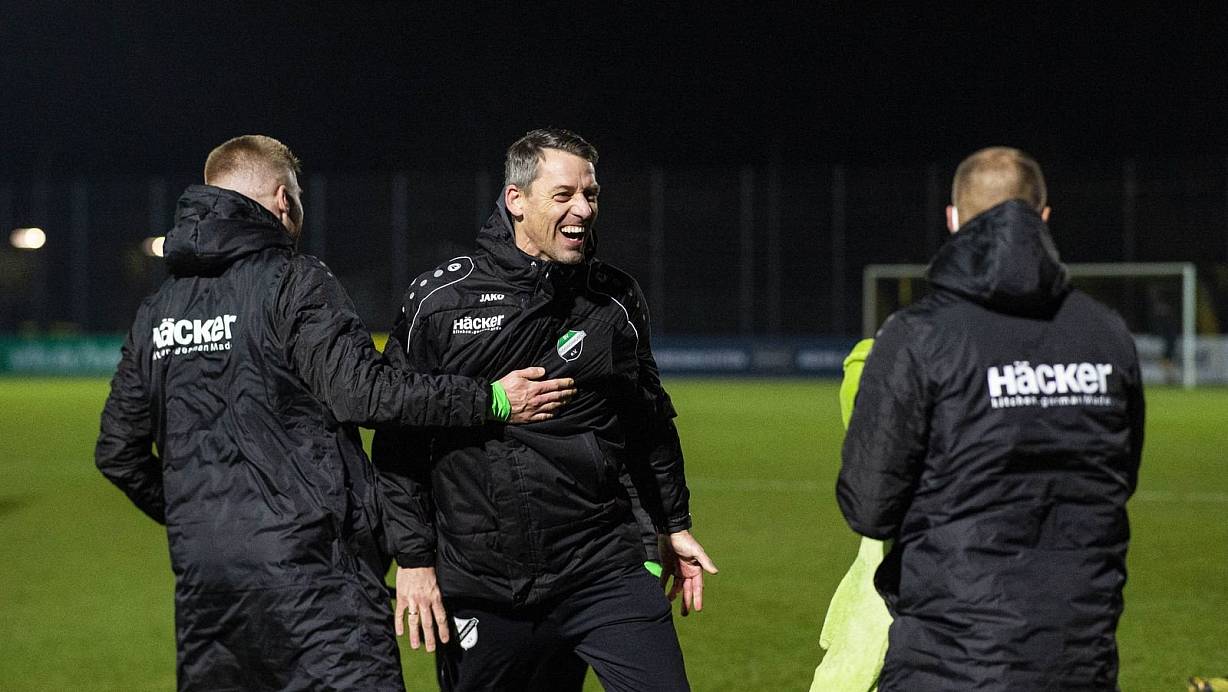 Vorfreude: Rödinghausens Trainer Nils Drube (Mitte) hat sein Team auf drei intensive Wochen am Ende der Saison eingeschworen. | © Noah Wedel