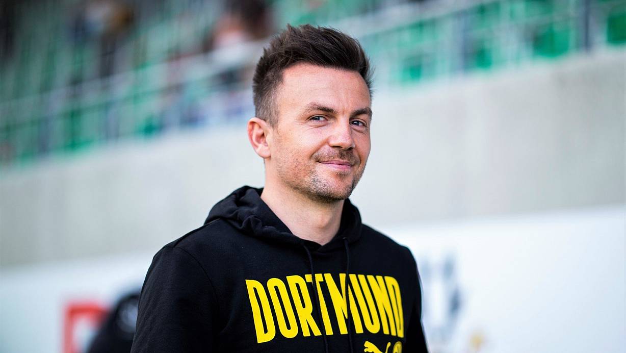 Ein Lächeln für den Fotografen: Enrico Maaßen, der als Trainer des Gegners ins Wiehenstadion zurückkehrte. | © Noah Wedel