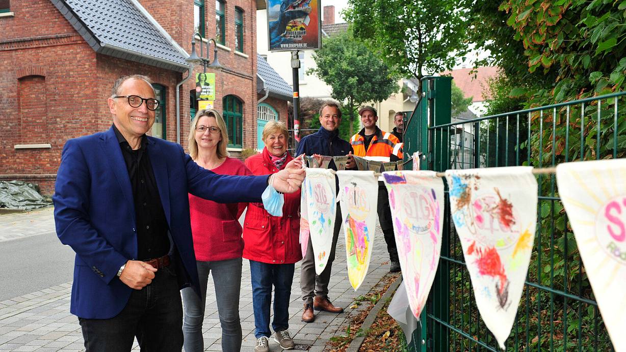 „Wir möchten, dass die Bürgerinnen und Bürger sowie die Aussteller, die jedes Mal von außerhalb zum Tag der Regionen gekommen sind, uns weiterhin wahrnehmen", sagt Bürgermeister Siegfried Lux. „Und alle sollen wissen, dass es wieder richtig losgeht, wenn Corona vorbei ist." Um Aussteller, Vereine, Gastronomie und Gewerbe auch diesmal mit einzubinden, haben die Organisatoren Stoffwimpel an alle Beteiligten der vergangenen Jahre geschickt und darum gebeten, sie zu gestalten. „Egal, ob bunt oder einfarbig, aufwendig oder simpel, wir haben uns über jeden Einzelnen gefreut, den wir zurückbekommen haben", sagt Siegfried Lux. „Und tatsächlich sind mehr als 400 toll gestaltete Wimpel zurückgekommen." Die hängten Wage und die Gemeinde Rödinghausen jetzt entlang der Alten Dorfstraße auf und gaben damit den Startschuss zu den Regionalen Tagen.