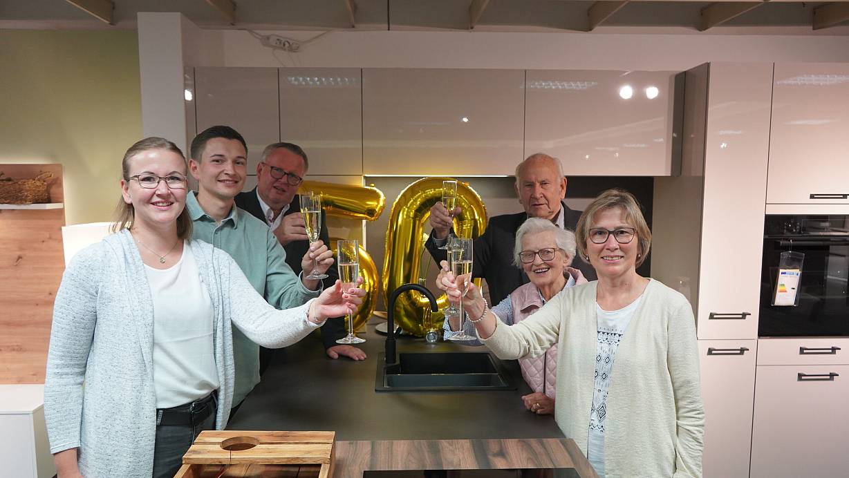 Echtes Familienunternehmen: Anna Lena (im Uhrzeigersinn), Jan Niklas, Rainer, Erwin und Lisa Barre sowie Bärbel Schürheck (Schwester von Rainer Barre) stoßen auf das halbe Jahrhundert an. | © privat