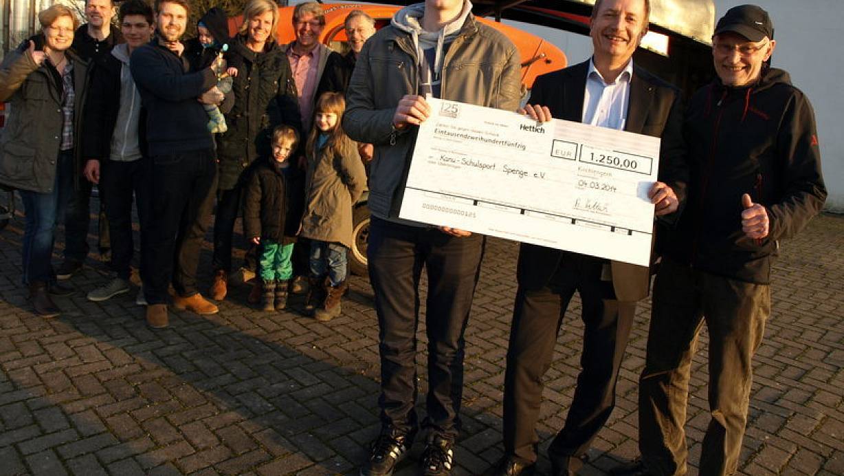 Spenge (jg). Mit dem Kanu über Else, Werre und Warmenau zu paddeln, steht bei den Schülern der Regenbogen-Gesamtschule hoch im Kurs. In einer AG können die Schüler in den Sport hineinschnuppern und bei Interesse Mitglied in der Kanuschulsportgruppe werden. Jetzt unterstützte die Firma Hettich den Verein mit einer Spende über 1.250 Euro aus ihrer Aktion zum 125-jährigen Firmenbestehen.