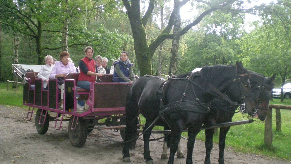 Mit Pferdekutschen fuhren die mit Hückeraner Heimatfreunde durch die Heide. | © Privat