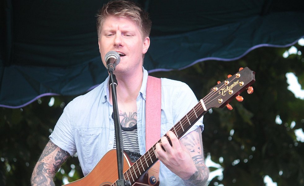 Wiederum draußen und sogar mit Sonnenschein übernahm Marcel Ganguin aus Bielefeld. Er trat letztes Jahr mit seiner Band auf, jetzt – wie im ersten Festival-Jahr – wieder alleine. „Back to the Roots als Singer-Songwriter", erklärte Ganguin, der seine selbst geschriebene Musik als euphorische Melancholie bezeichnet. Mit „Auf den Dächern", „Irgendwo für immer" und dem Titelsong seines Albums „Was nützt die Welt" schlug er ruhigere, nachdenkliche Töne an. Auf der Bühne verriet er, wie die tiefgründigen Textzeilen entstehen: „Betrunken schreiben und nüchtern überarbeiten."