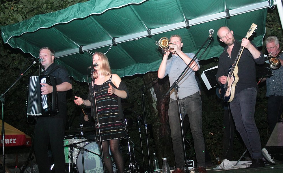 Denn mit einer Unwetterwarnung und Starkregen war der Auftakt im Freien zunächst ungemütlich. Das stellte jedoch kein Problem für Jörg Machan dar, der das Festival traditionsgemäß eröffnete. Er zog kurzerhand ins Innere der Gaststätte um und spielte im Trockenen unplugged.