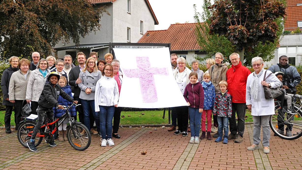 In Spenge startete in der vergangenen Woche am Montag eine Unterschriftenaktion für die Geschlechtergerechtigkeit in der katholischen Kirche, an jedem Tag der Woche waren die Frauen auf einem anderen Platz in der Stadt vertreten. Insgesamt 280 Unterschriften haben sie dabei gesammelt. Zum gemeinsamen Gebet an der Kirche waren alle diese Unterstützer eingeladen, zu denen auch Männer und Nichtkatholiken gehören: Rund 90 Menschen beteiligten sich an der Menschenkette, hielten sich an den Händen und beteten.