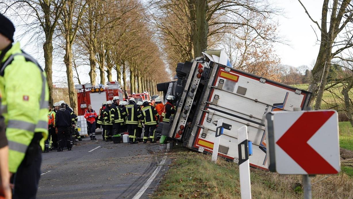 Rettungskräfte der Feuerwehr mussten die beiden Männer aus dem Fahrerhaus des Lastwagens bergen. Auch ein Rettungshubschrauber war im Einsatz. Die Ursache ist laut Polizei unklar.