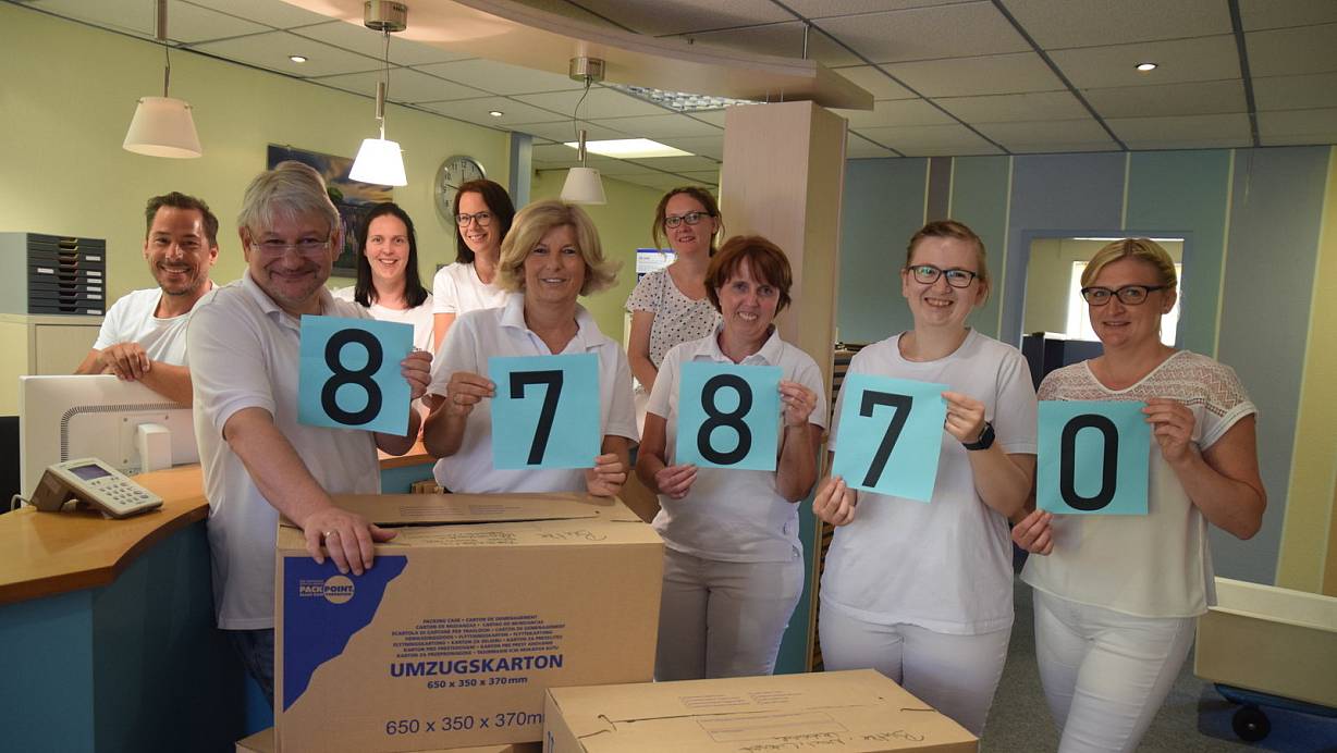 Das Praxisteam von der Langen Straße: Dominic Schubert, Andreas Schimke, Jeanete Niermann, Ariane Schenk, Stefanie Schimke, Tatjana Brinkmann, Kirsten Groppel, Emily Braun und Monika Helbich mit der neuen Telefonnummer, unter der sie ab Juli zu erreichen sind. | © Mareike Patock