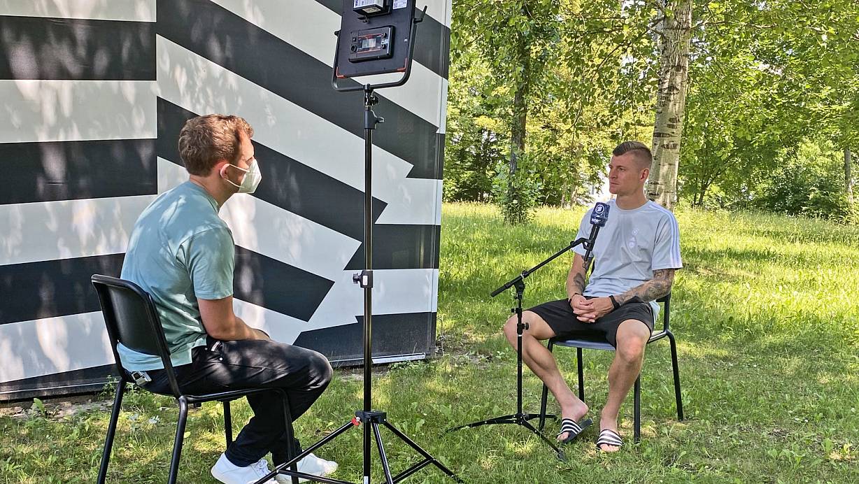 Im Quartier der deutschen Mannschaft interviewt Lennert Brinkhoff Nationalspieler Toni Kroos. | © WDR