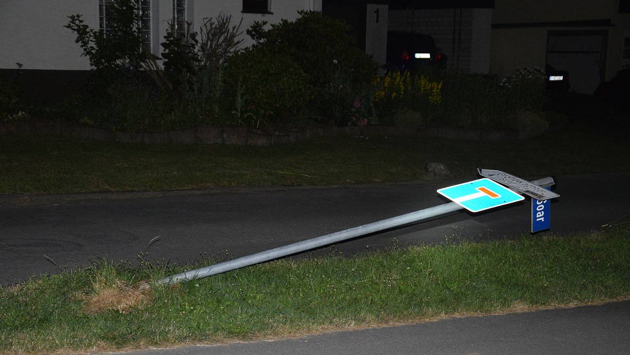 Angetrunkene fährt Straßenschild komplett um