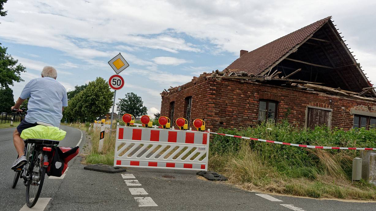 Giebel eingestürzt und Radweg gesperrt: Gefahr für Radfahrer