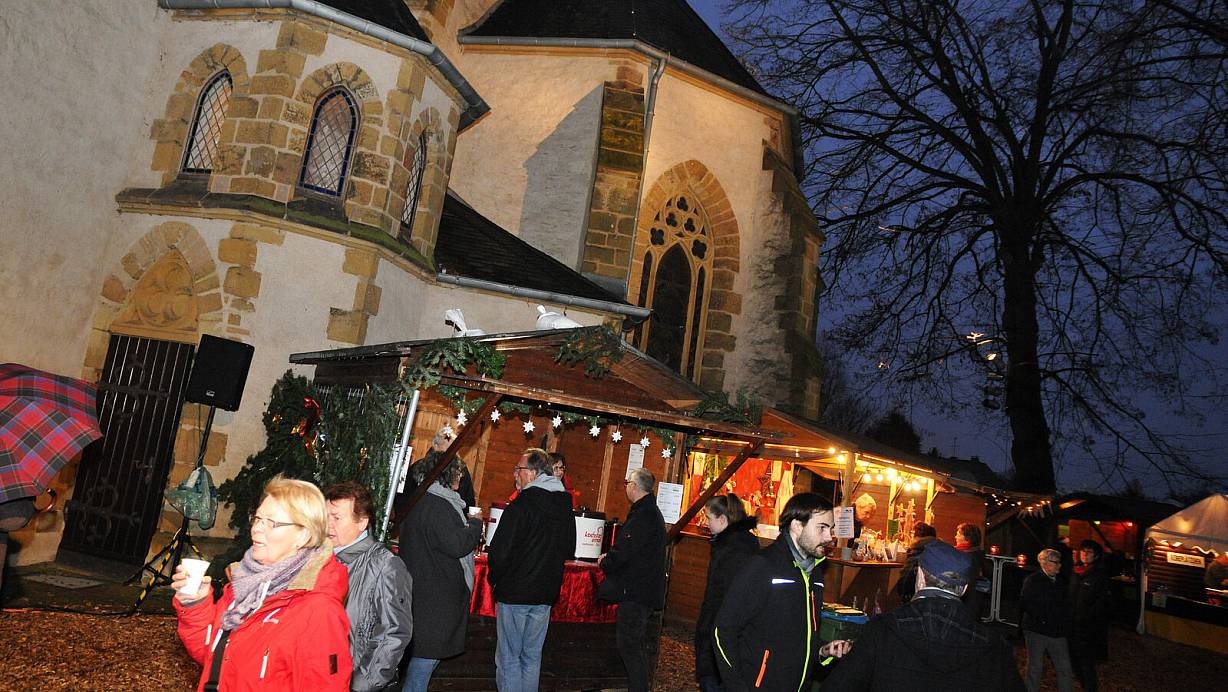 Heimelige Atmosphäre: Beim Spenger Weihnachtsmarkt sind kleine, liebevoll dekorierte Hütten rund um die St. Martinskirche angeordnet. | © Stefanie Boss