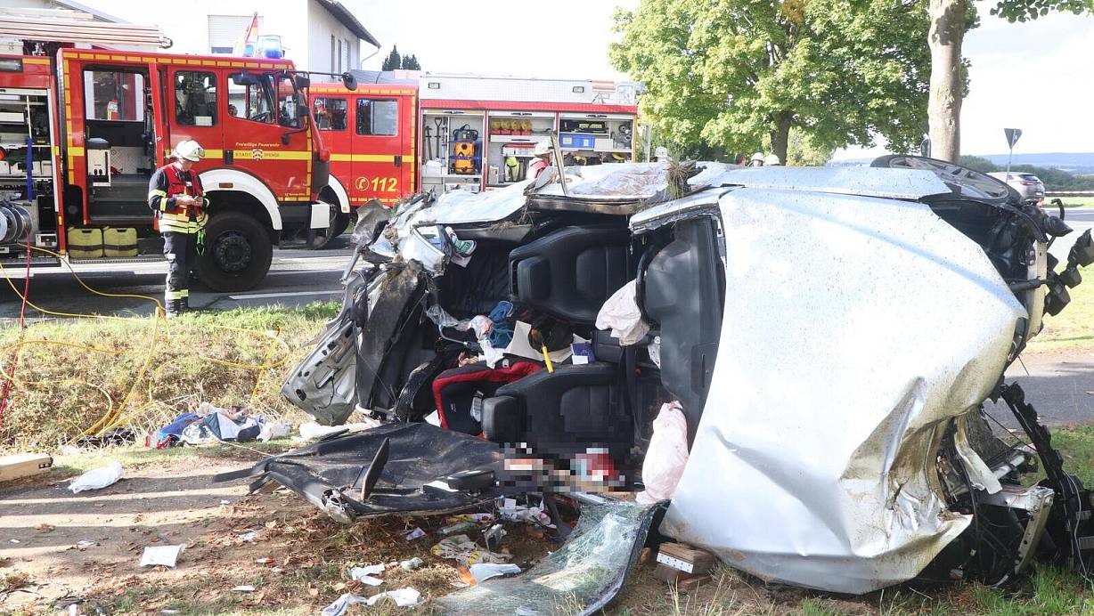 Die Beifahrerin und ein Kind kommen mit schweren Verletzungen in die Klinik. Großeinsatz für Rettungskräfte und die Feuerwehr. Bünder Straße lange gesperrt.