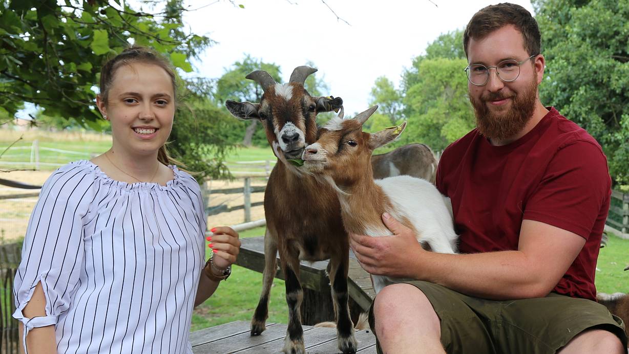 Timm Rottmann (rechts) kümmert sich gemeinsam mit seiner Freundin Nele Storck um die Ziegen aus dem eigenen Streichelzoo. | © Lena Kley