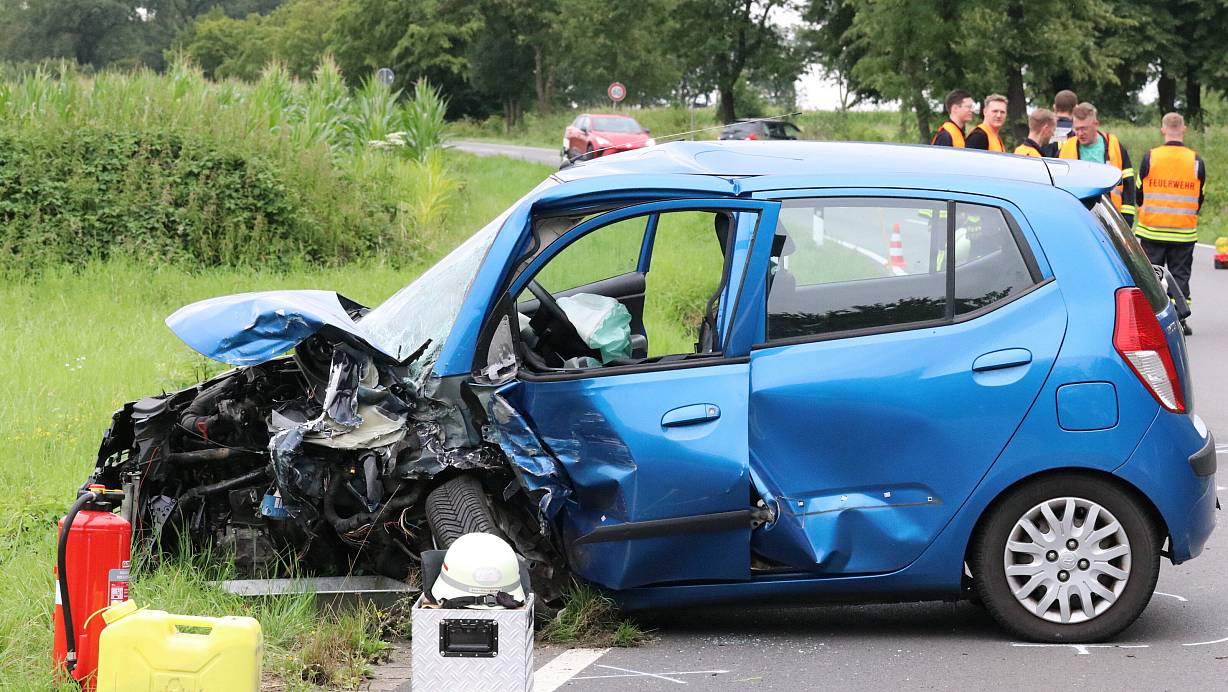 Bei einem schweren Verkehrsunfall auf der Bielefelder Straße / Ecke Kleekampweg wurden in Spenge drei Menschen teils schwer verletzt. | © Claus Frickemeier