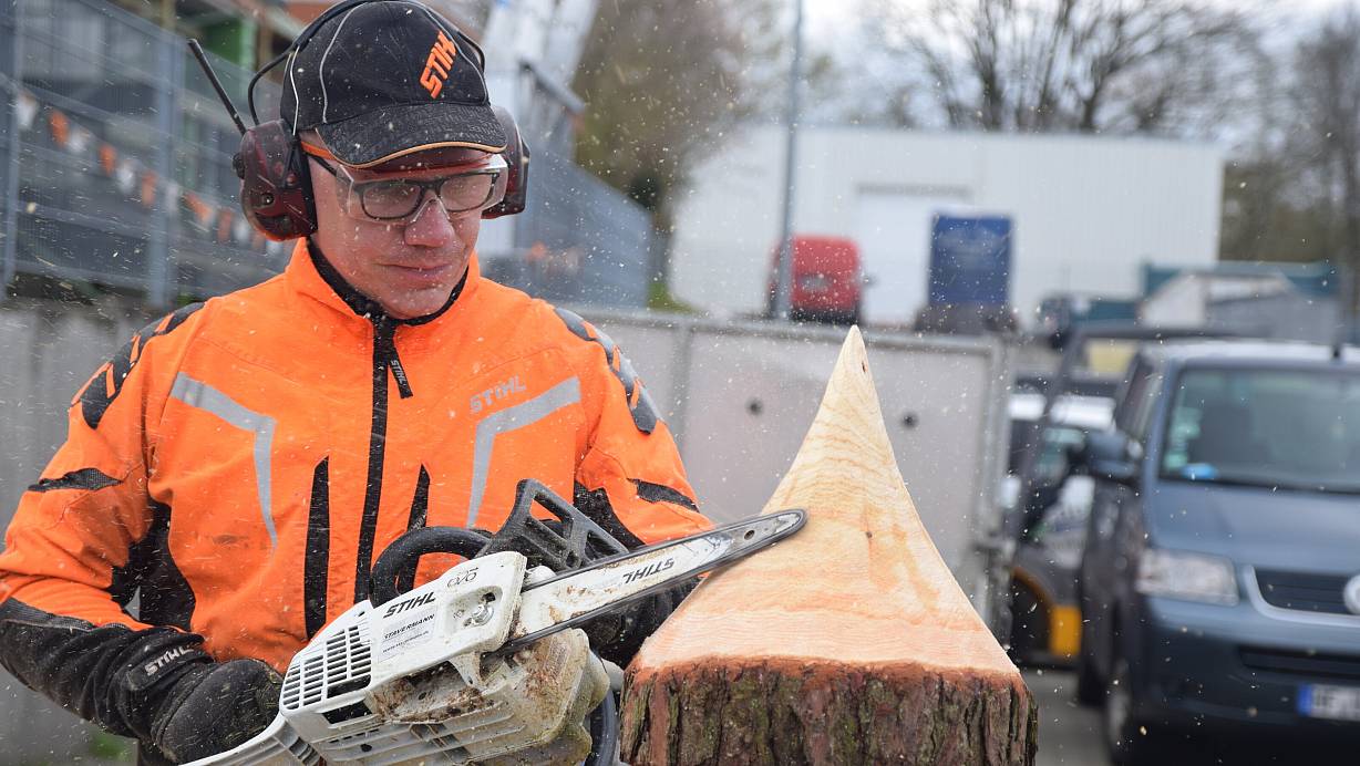 Kai Gerulat gestaltete auf dem Industriestraßenfest Holzfiguren mit der Motorsäge. | © Mareike Patock
