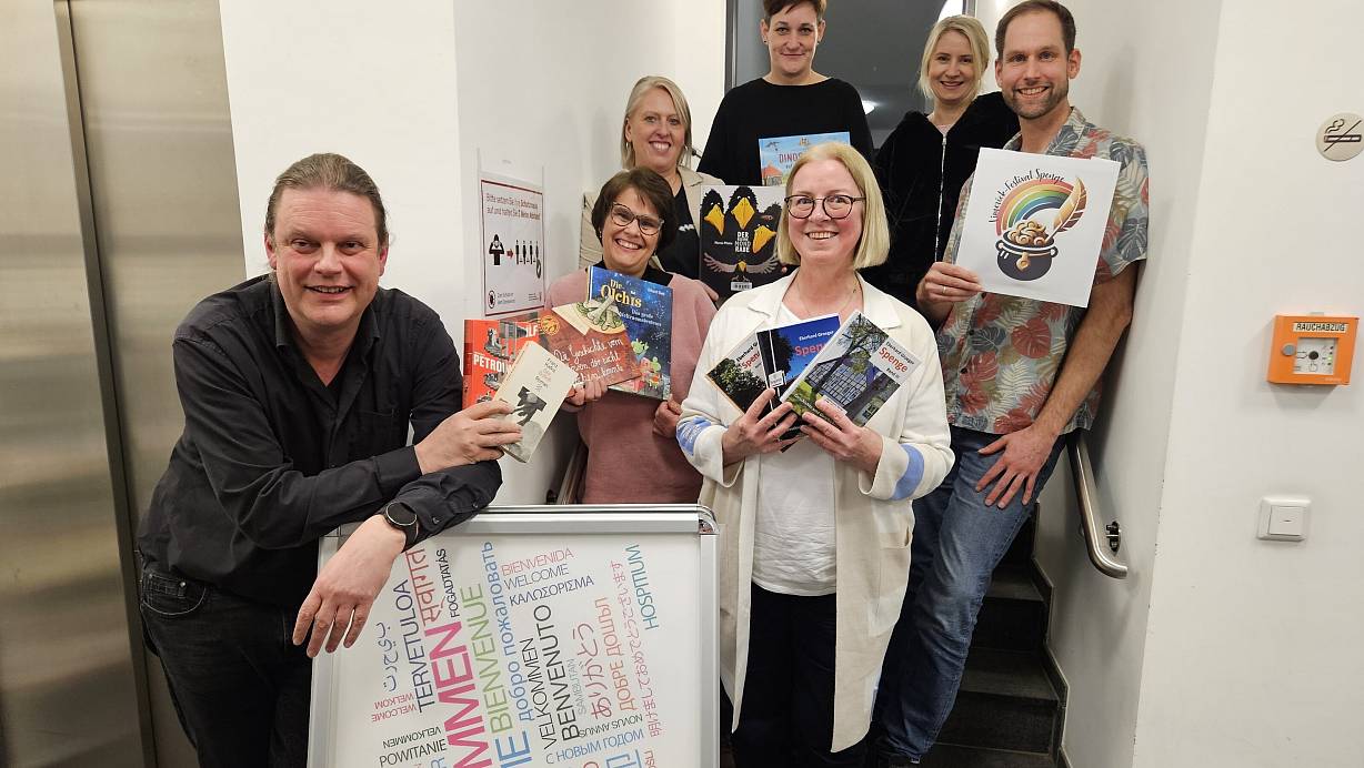 Freuen sich auf interessante Lesungen und Veranstaltungen: Michael Helm (v. l), Anke Stange, Caroline Hanslik, Franziska Herfurth, Christiane Antons, Henning Foh und die Leiterin der Stadtbücherei Spenge Dagmar List (vorne r.). | © Alexandra Strameier