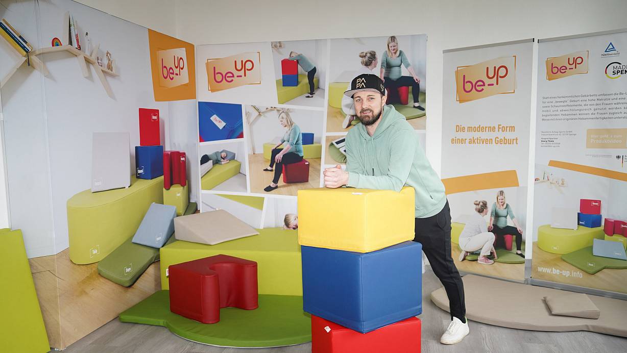 Mitten in den Be-Up-Elementen: Georg Thiele von der NaNoForm Airbag Sports GmbH ist Vertriebsleiter für die neuen Möbel. | © Yvonne Gottschlich