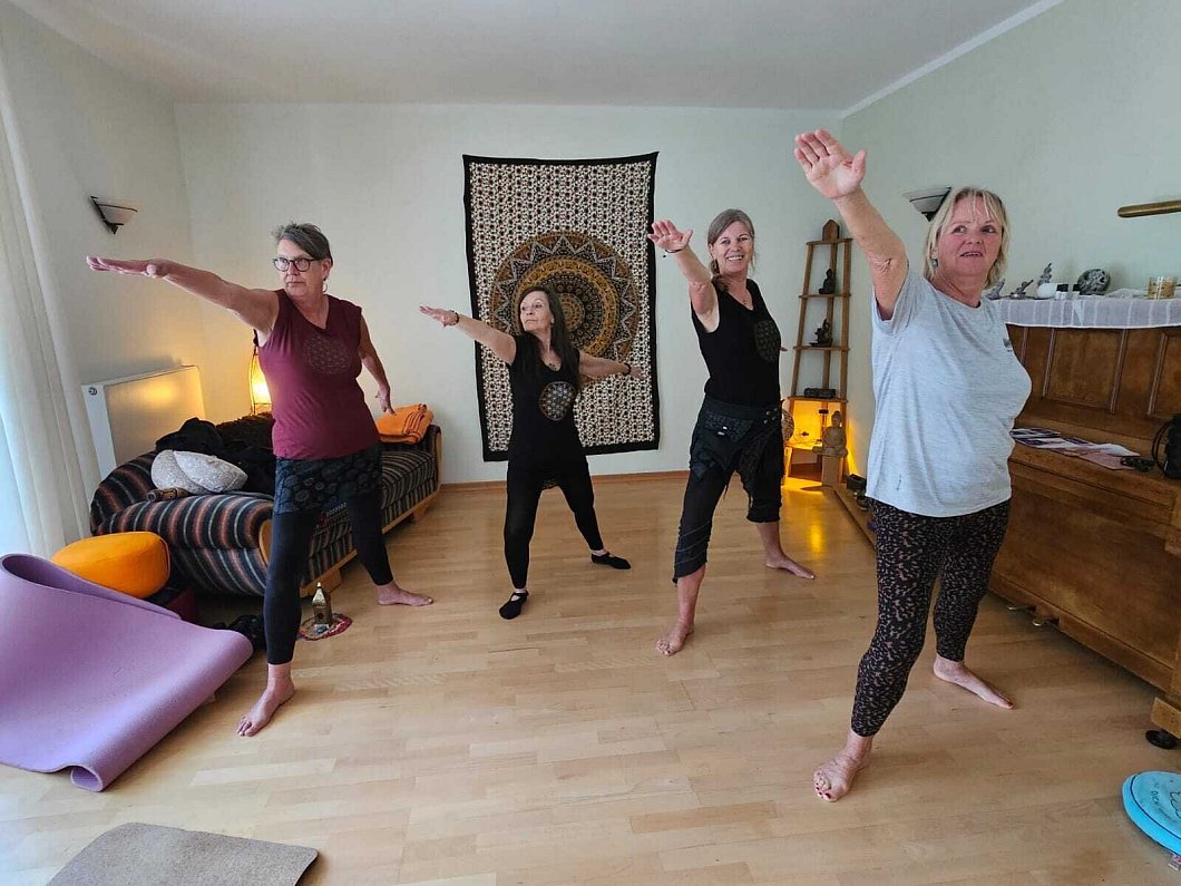 Die Teilnehmerinnen des Dienstags-Kurses, Angelika und Regina, bestätigen die positive Wirkung des ganzheitlichen Ansatzes von Yoga auf die Beweglichkeit, Kräftigung der Stützmuskulatur und auf das allgemeine Wohlbefinden: „Nach einem intensiven Einzeltraining fühlte ich mich einmal ’verbunden mit allem’“, berichtet Angelika.