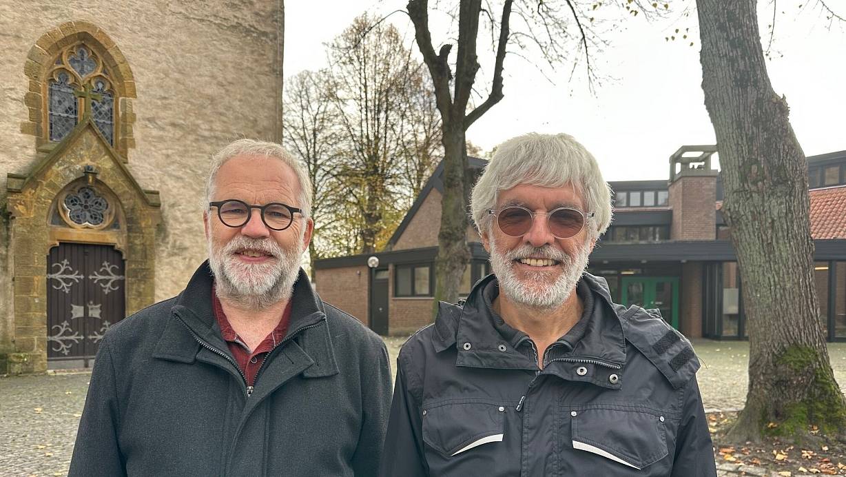 Wolfgang Günther (l.), stellvertretender Vorsitzender des Presbyteriums, und Baukirchmeister Martin Schönbeck arbeiten an Lösungen für die Finanzierung Spengeraner Kirchen-Immobilien. | © Ingrun Waschneck