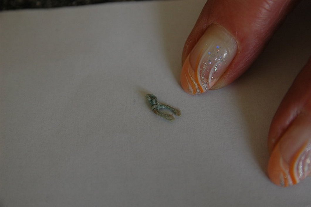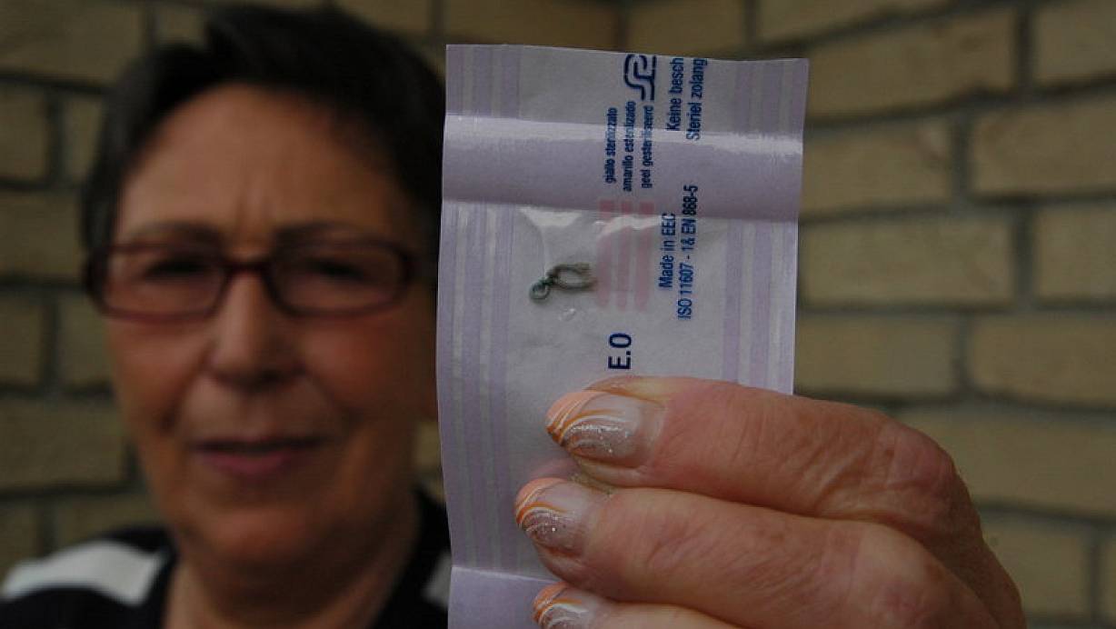 Die 67-Jährige hält eine kleine durchsichtige Tüte in der Hand. Darin eingeschweißt ist der Faden, der ihr monatelang Schmerzen verursacht hat. Mit der Fingerspitze fährt Hötger darüber. "Der ist fast hart wie Draht." Dass sie den Faden endlich verloren hat, darüber ist die Spengerin überglücklich: "Jetzt geht es mir besser."
