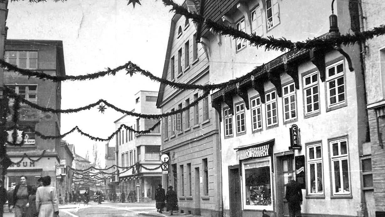 Klaus Nowitzki weiß: "Im Fachwerkhaus (rechtes Bild Vordergrund) war eine Bäckerei. Der Meister kam sicherlich auf 150 Kilo. Als Stift der Fa. Landwehrjohann habe ich mehrfach in der Backerei Reparaturen ausgeführt. Vom Ladengeschäft zur Backstube musste man durch einen kleinen Innenhof bei Wind und Wetter gehen. In dem Innenhof hauste ein Schwein, dass von den Resten der Backerei gefüttert wurde. Das Personal der Backerei ging unzählige Male am Tag durch diesen "Schweinestall" direkt in den Verkaufsladen. Besonders bei Regen - ein heute undenkbarer Zustand für ein Lebensmittelgeschäft, damals Alltag (1960). Mindestens ab 1960 war der Weihnachtsschmuck in der Rennstraße beleuchtet, um auf Ihre Unterzeile zum Foto zu kommen. Ab 1960 habe ich mit Kollegen mehrere Jahre die Weihnachtsbeleuchtung bei Wind und Wetter (auch Frost und Schnee) montiert (ohne Hubwagen natürlich."