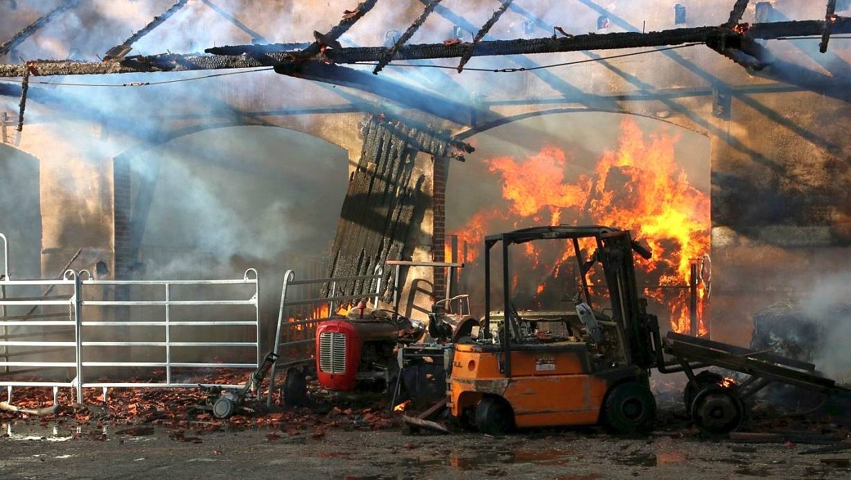Das Feuer am Sonntagabend in der Scheune soll wegen eines Funkenfluges ausgebrochen sein. Die Höhe des Schadens geht in die Hunderttausende.
