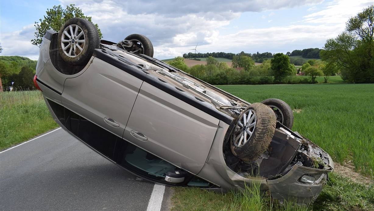 Das Auto kam durch die Ablenkung von der Straße ab und überschlug sich. | © Polizei Herford