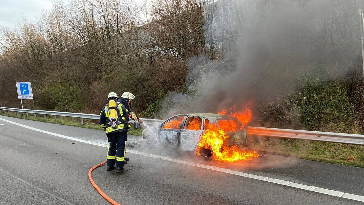 Auto brennt aus auf der A2 aus - Sperrung aufgehoben