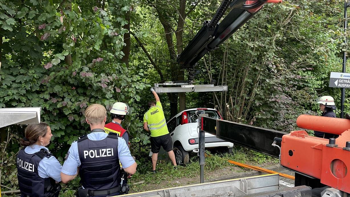 Feuerwehr und Polizei werden nach Vlotho gerufen. Ein Fahrzeug hängt in einer Böschung fest. Eine Rettungsaktion startet.