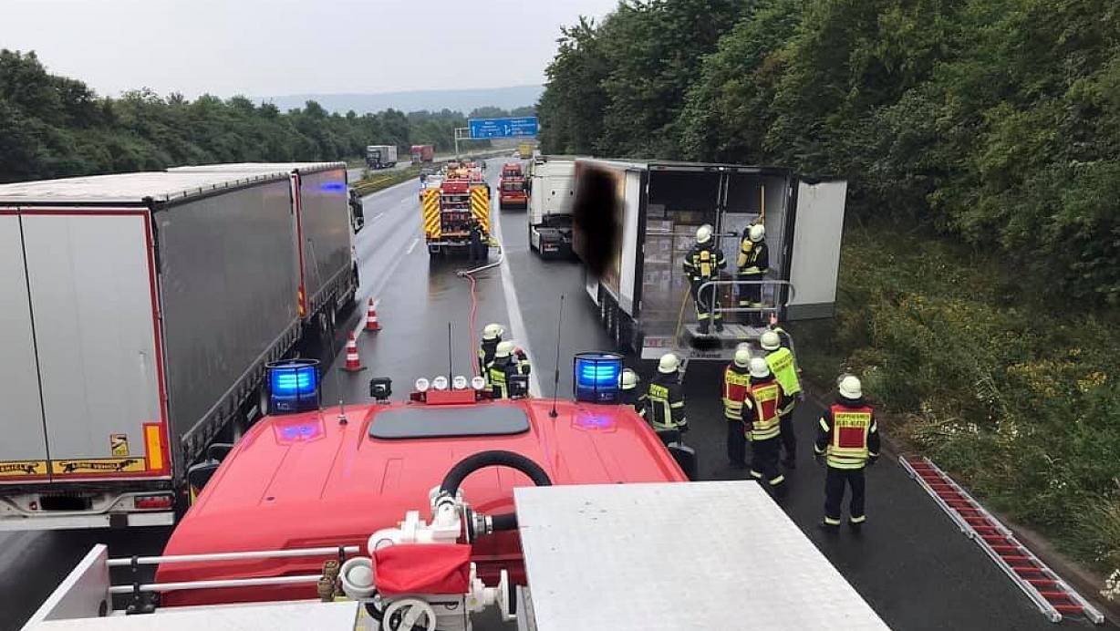 Auf einem Auflieger kommt es am Vormittag zu einem Schwelbrand. Die Einsatzkräfte bekommen das Feuer dank spezieller Ausrüstung in den Griff.