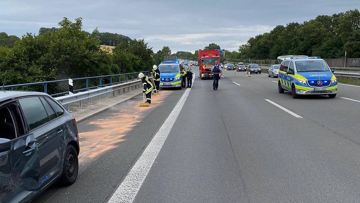 Beim Eintreffen der Polizei standen die zwei Pkw auf dem Seitenstreifen. Auf der gesamten Fahrbahn waren diverse Fahrzeugteile, Betriebsstoffe und Straßenbegleitgrün verteilt. Die beschädigten Pkw waren nicht mehr fahrbereit und mussten abgeschleppt werden. Die Polizei schätzt den Sachschaden auf 25.000 Euro. Für die Dauer der Reinigungsarbeiten durch die Feuerwehr Vlotho musste die Fahrbahn zum Teil voll gesperrt. Es staute sich bis etwa fünf Kilometer hinter der Unfallstelle. Die Ermittlungen zur Unfallursache dauern an.