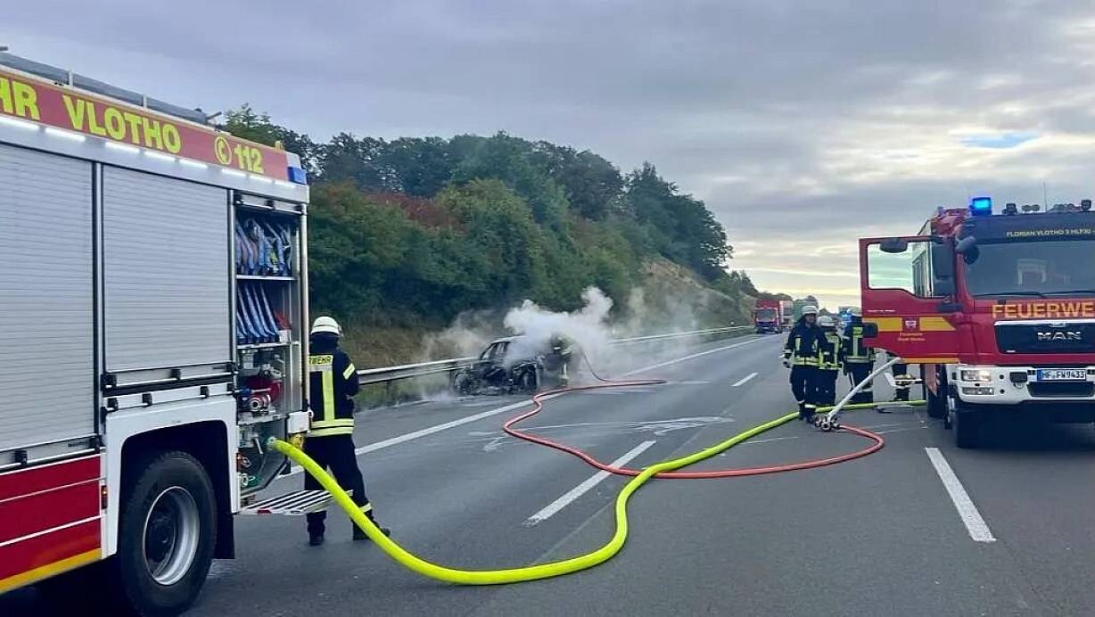 Auto brennt auf A2 zwischen Vlotho und Herford komplett aus