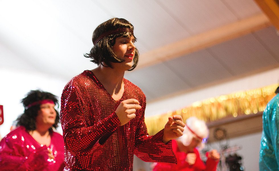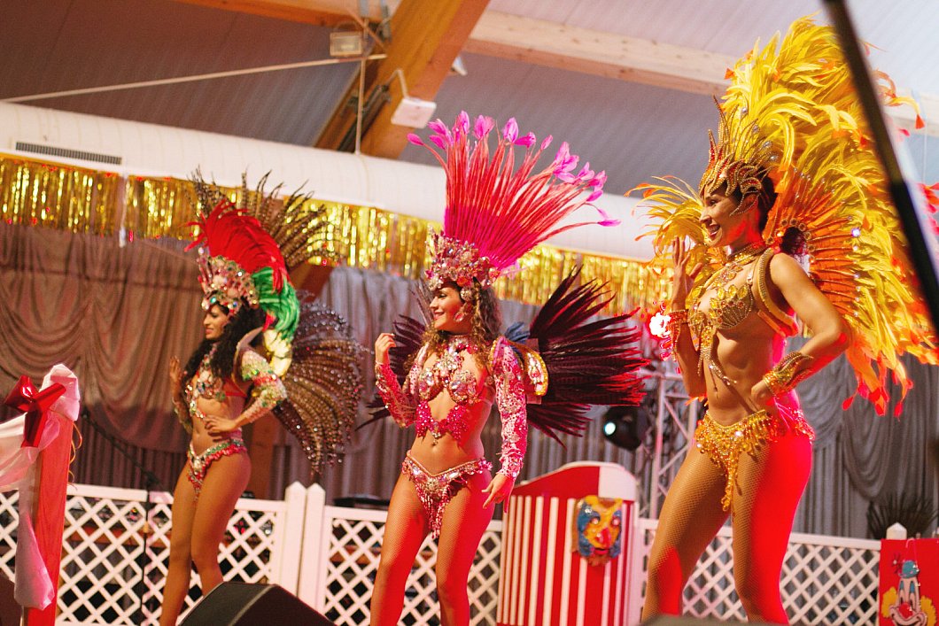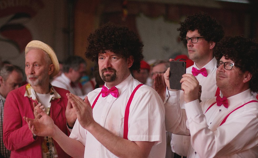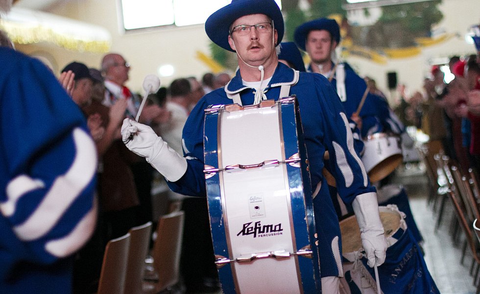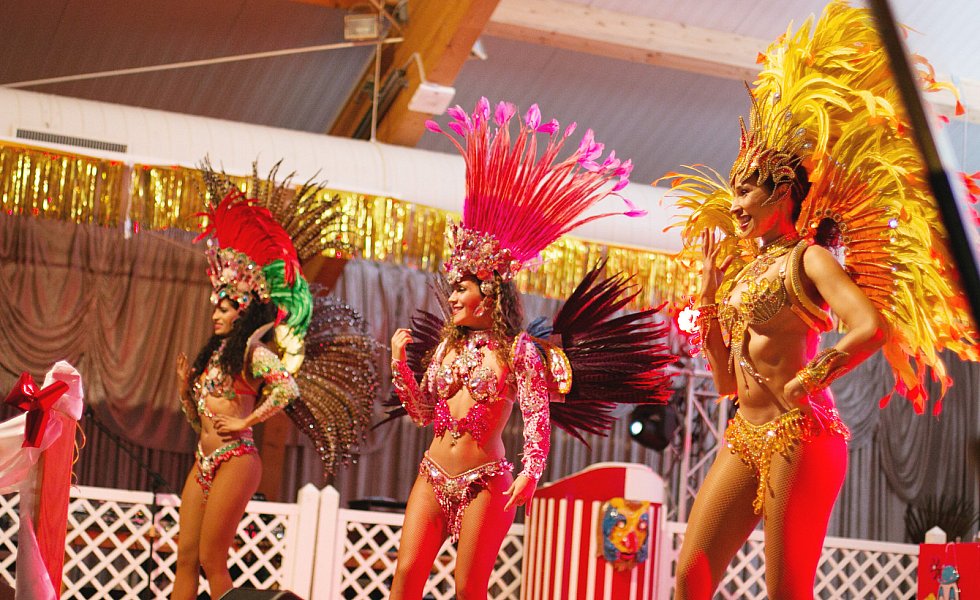 Funkelnd und federbehangen ging es weiter: Eine kleine Reise zum brasilianischen Karneval unternahmen die Teilnehmer der Herrensitzung zusammen mit den rassigen Tänzerinnen der Phönix Samba Show. Für kräftigen Lachmuskelkater sorgten die sich nicht allzu ernst nehmenden „Tornados“. Im stylishen Tanzoutfit und mit mächtigem Schnäuzer wurde eine kesse Sohle aufs Parkett gelegt. Cindy Laupers „Girls just wanna have Fun“ und MC Hammers „U cant touch this“ boten dabei die perfekte Untermalung.