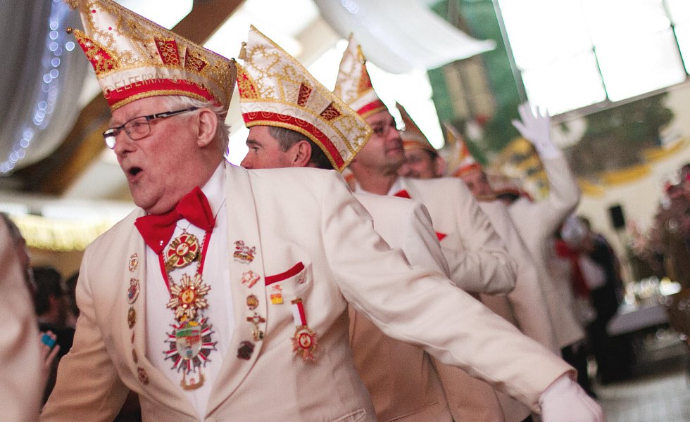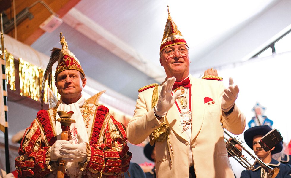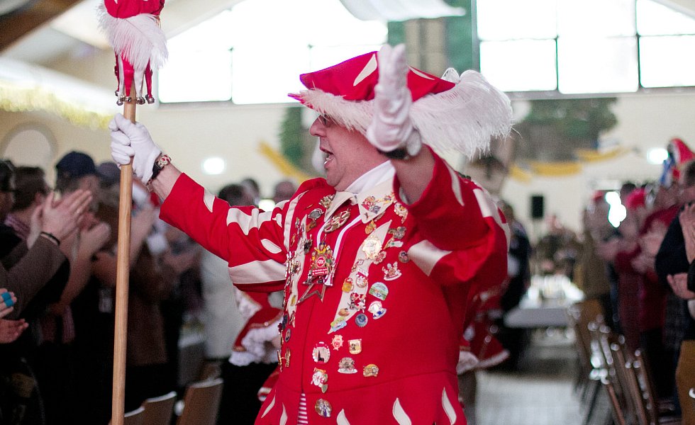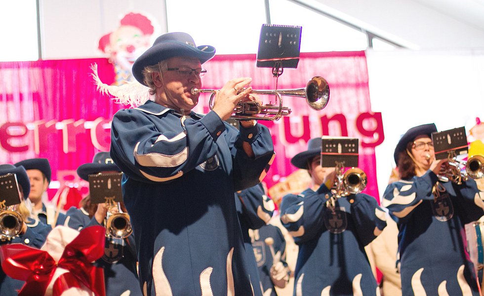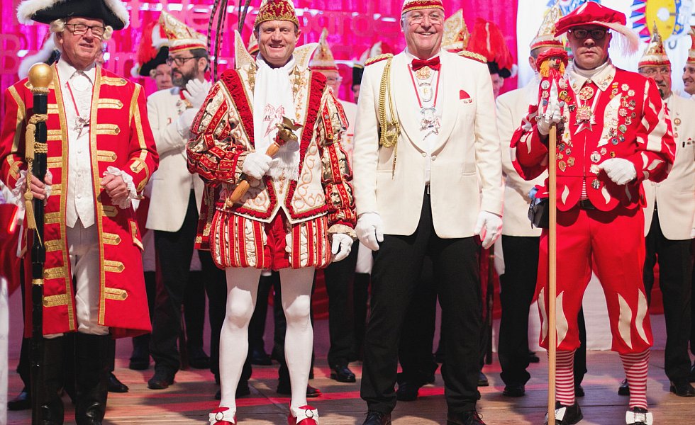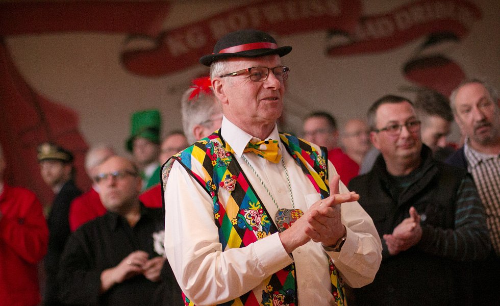 Ein „Moin, Männer!“ hatte das kunterbunte Treiben eingeläutet. Kurz war die Liste der geladenen Frauen. Auf der Bühne waren sie zwar erwünscht, jedoch nicht in den Reihen der Zuschauer. Denn bei ihrer Herrensitzung sind die männlichen Jecken der Karnevalsgesellschaft Rot-Weiße Garde lieber unter sich. Pünktlich um 11.01 Uhr zogen die traditionell gekleideten Narren mit Pauken und Trompeten in die farbenfrohe Halle ein. „Endlich wieder Herrensitzung“, freute sich Präsident Jochen Blum. Es sei aber auch Zeit gewesen: „Zwei Jahre mussten wir warten.“