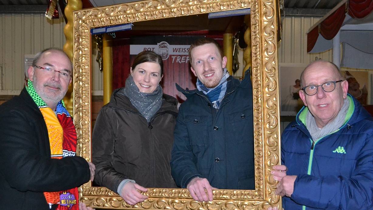 Beim traditionellen Besuch in der Wagenbauhalle machten sich die Tollitäten der Rot-Weißen Garde, Prinz Michael I. und seine Prinzessin Christina I., ein Bild vom Fortschritt der närrischen Instandsetzungsarbeiten. Natürlich ließen es sich auch die amtierenden Regenten der „Generation Gold" im Iburg-Tal, Seniorenprinz Wim Pepers und Seniorenprinzessin Annegret Versen, nicht nehmen, bei den Wagenbauern vorbeizuschauen und sich bei ihnen für die vielen ehrenamtlichen Arbeitsstunden zu bedanken.