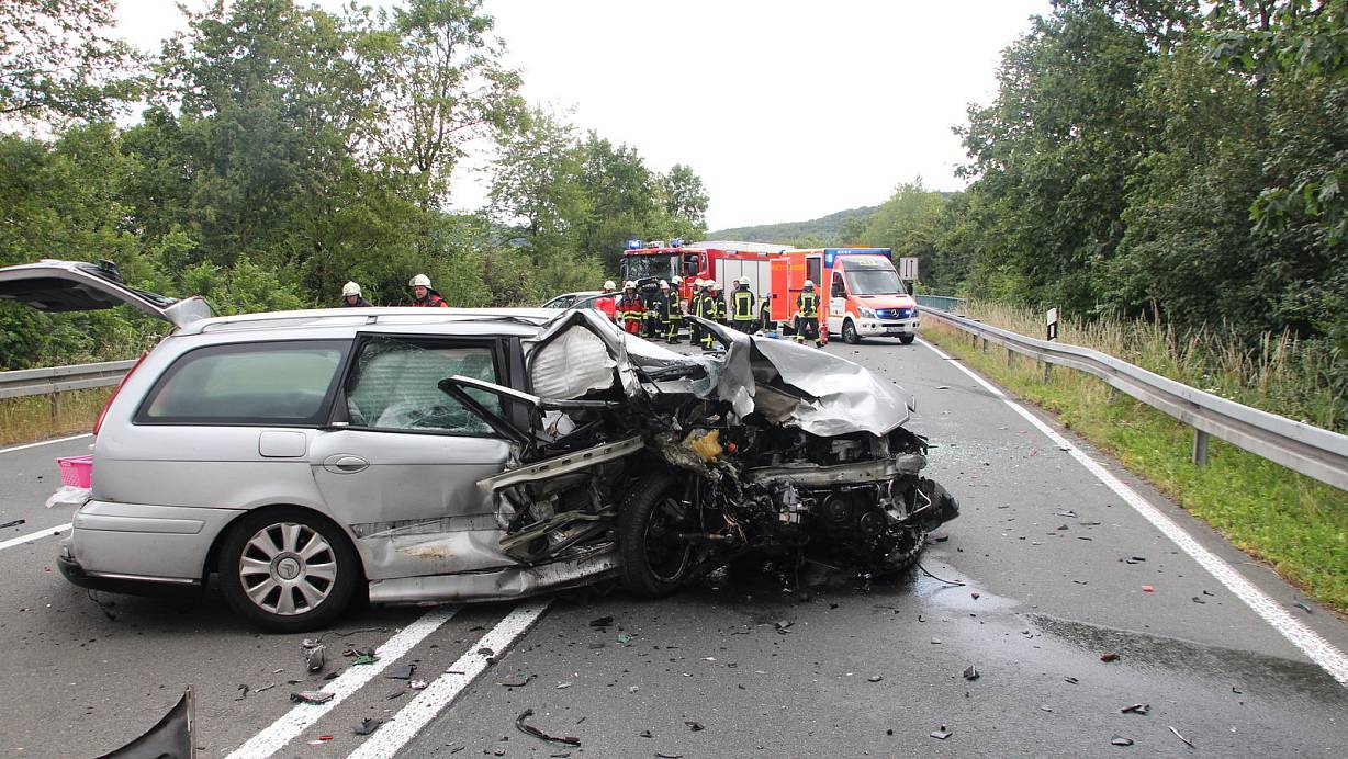Schwerer Frontalunfall auf B 64 in Bad Driburg