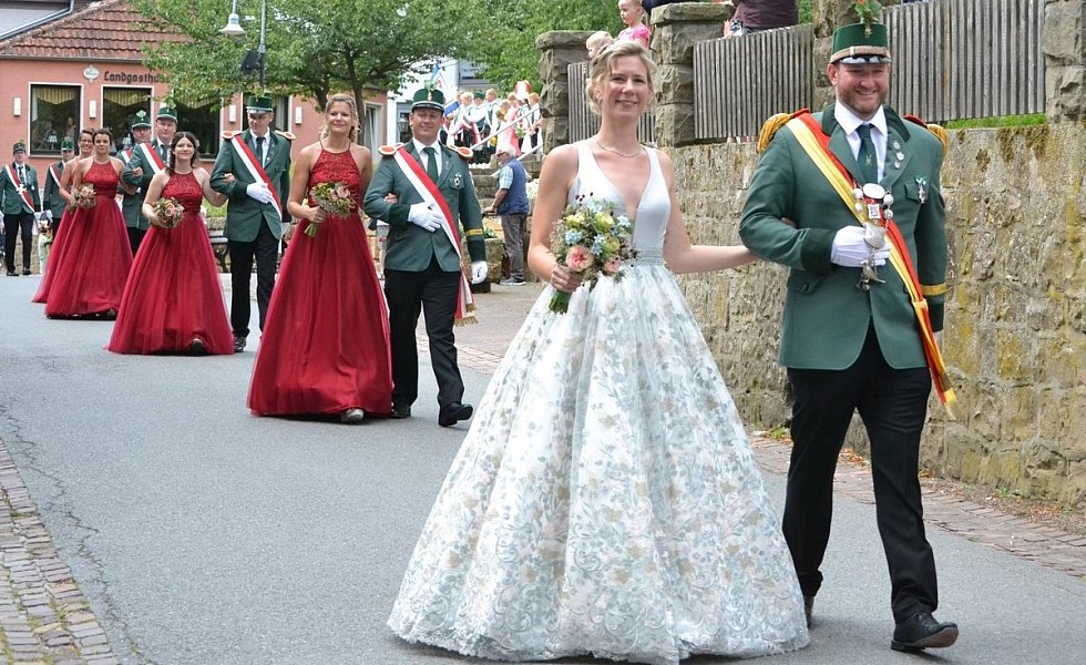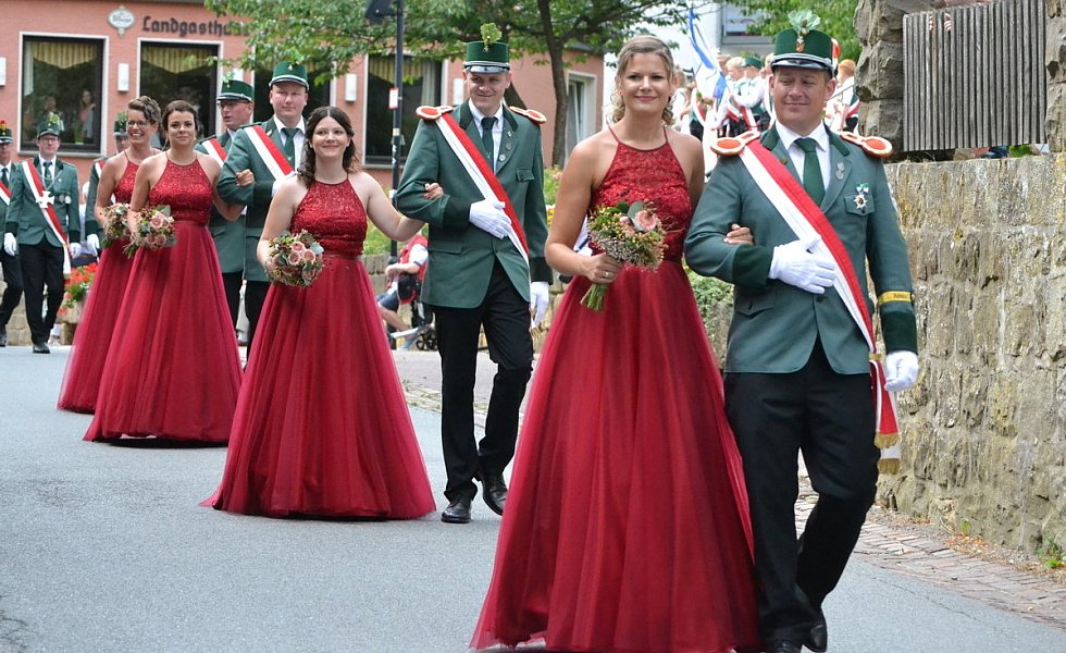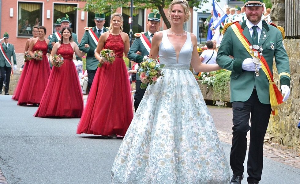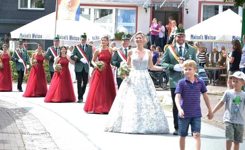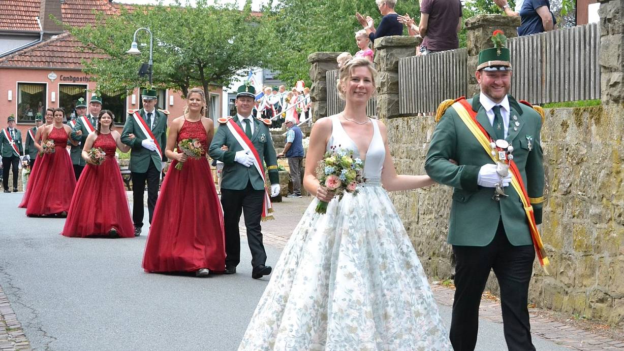 Und seit ein paar Jahren marschieren auch schon die Jüngsten stolz im Umzug mit: Das Bambini-Königspaar, Julia Fischer und Jan-Luca Güldner, und das Nethe-Königspaar, Emily Richter und Jannis Hicker, zeigten, dass sie das Präsentieren, Lächeln und Winken schon mindestens genauso gut beherrschen, wie ihre großen Vorbilder.