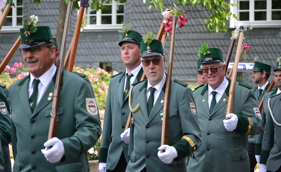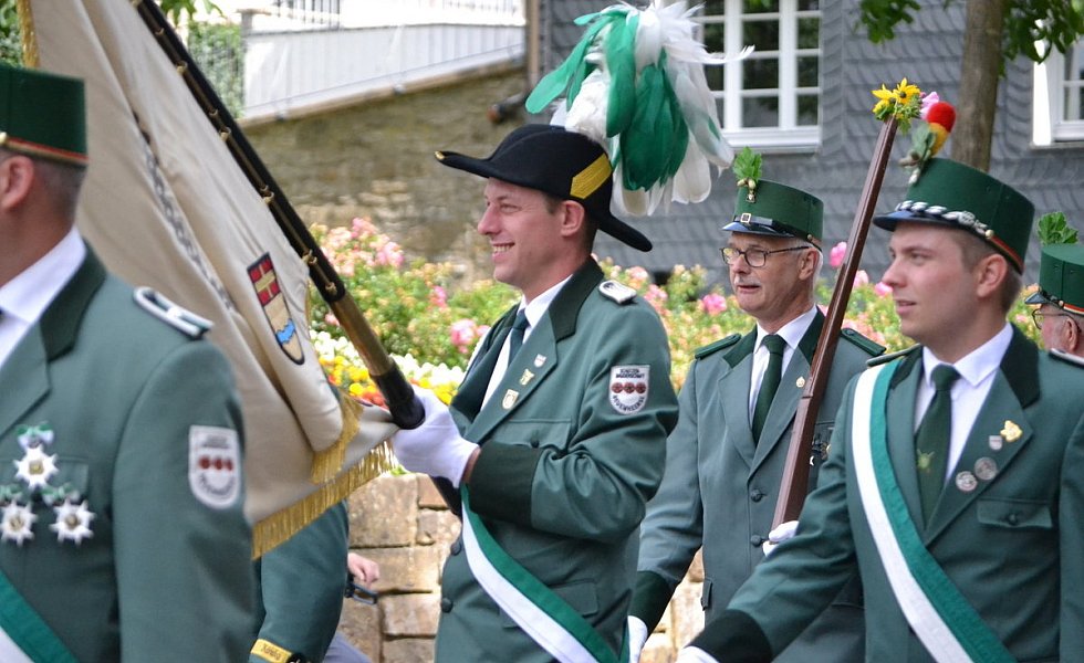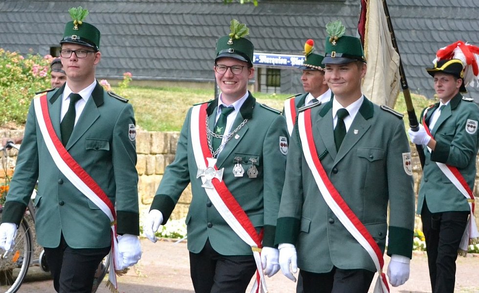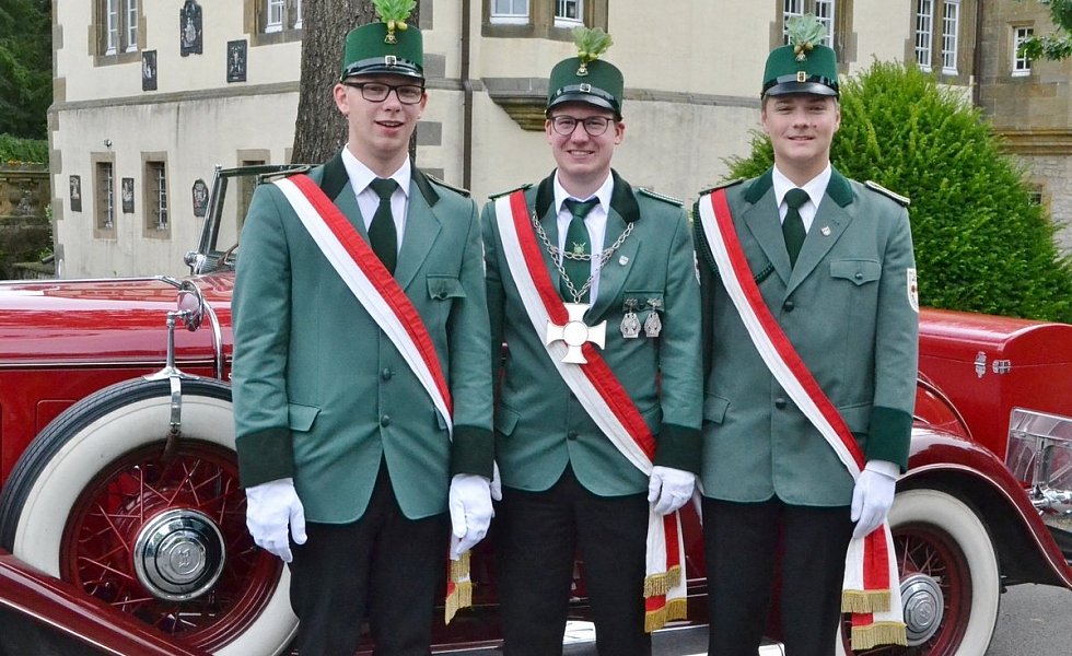 Bei den Festumzügen durch das mit Wimpeln und Fahnen in den Farben der St.-Fabian und Sebastian-Schützenbruderschaft geschmückte Dorf wurden auch Jungschützenprinz Hendrik Ziser, der sich beim Königsschießen die Prinzenwürde bereits zum zweiten Mal nach 2017 gesichert hatte, mit seinen Adjutanten Felix Ahrens und Felix Koch mit großem Jubel und Applaus empfangen.