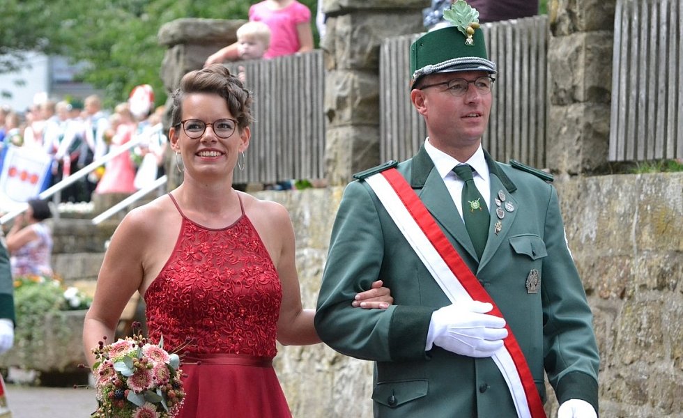 Neben dem Schützennachwuchs im Kindergarten- und Grundschulalter stand an der Seite seiner charmanten Ehefrau und Königin Claudia vor allem der Schützenkönig Michael Böhler im Mittelpunkt des Traditionsfestes. Begleitet wurden die jungen Majestäten von ihrem Hofstaat, dem Carolin und Daniel Wulf, Mareike und Volker Weskamp, Anna Wiederhold und Carsten Hesse sowie Mareike und Christian Gutsche angehören.