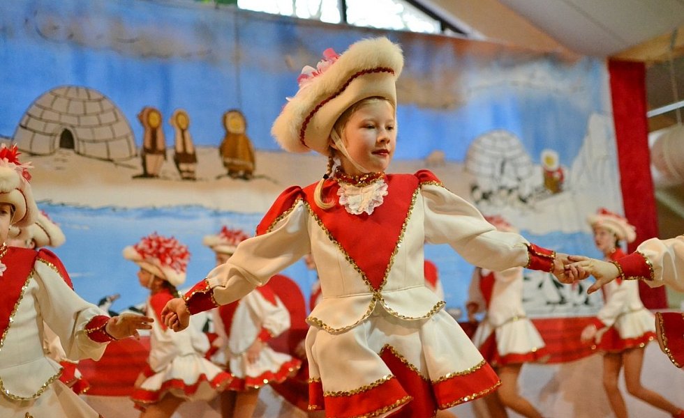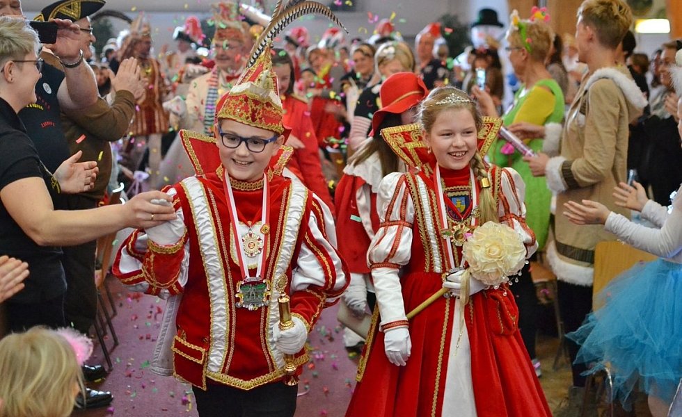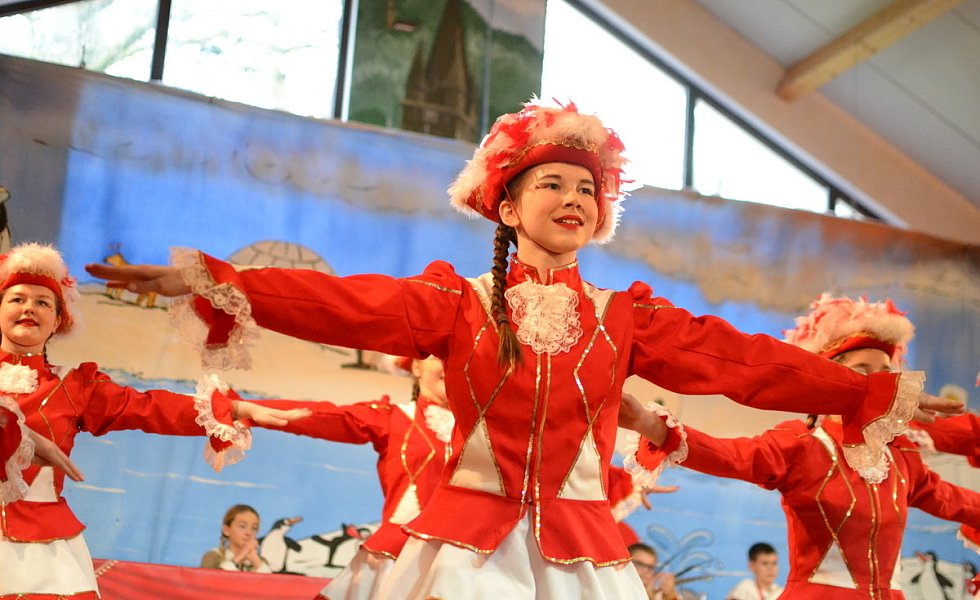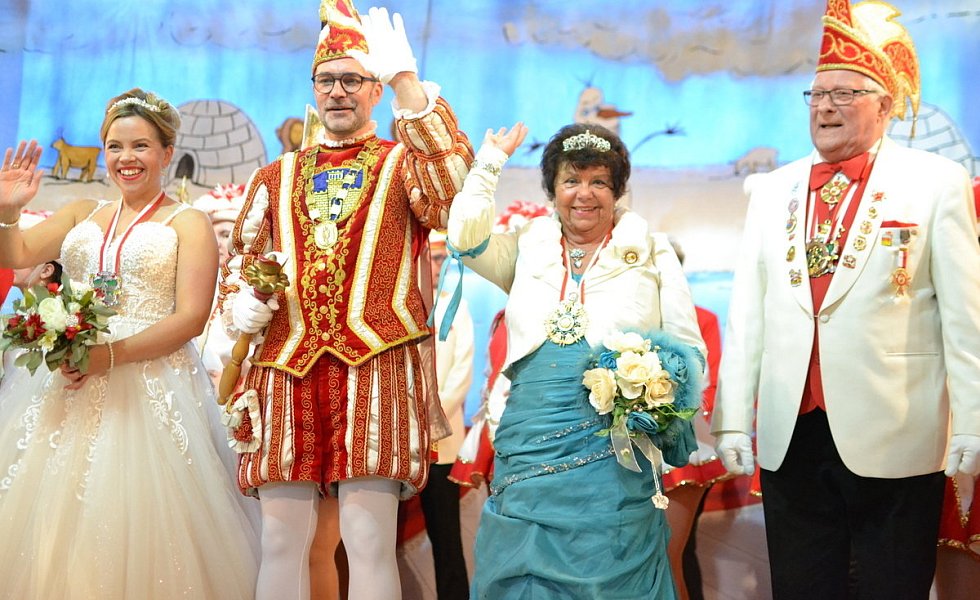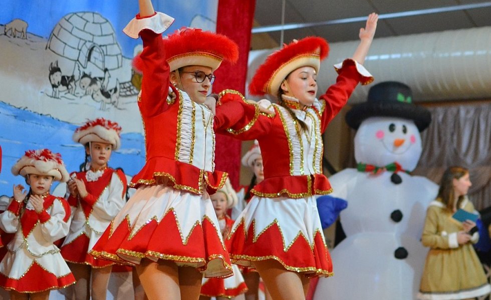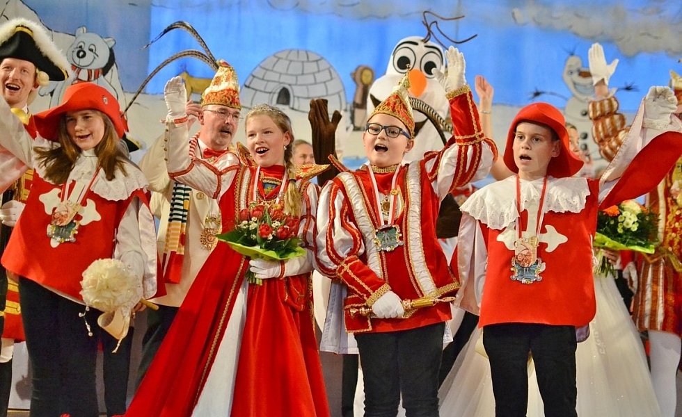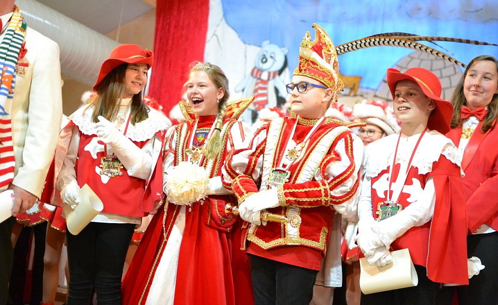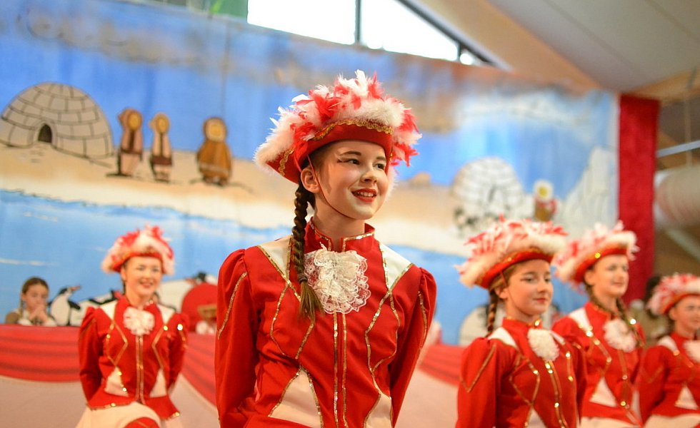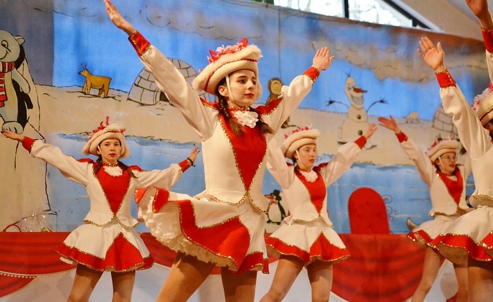Passend zum Motto „Am Polar, da ist was los, wir feiern mit Klein und Groß" hatte sich das Schützenhaus in eine arktische Eislandschaft mitsamt Iglus, Pinguinen, Eisbären und Eskimos verwandelt. Das allerdings nur bildlich. Spätestens, als die kleinen Tollitäten nach der offiziellen Krönung einen Ehrentanz wie die Profis auf das Parkett legten, schmolzen die Herzen der großen und kleinen Jecken im Saal innerhalb von Sekunden dahin.