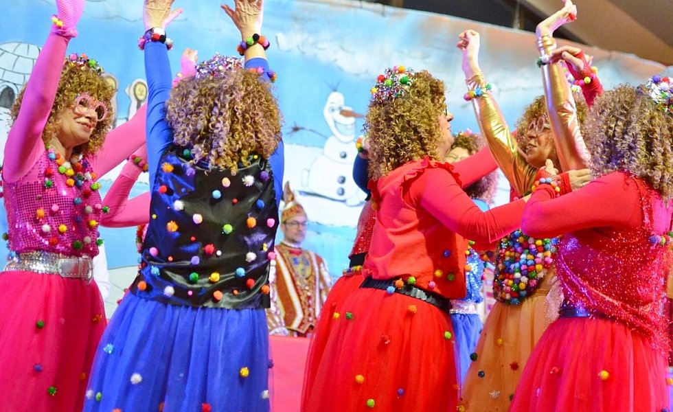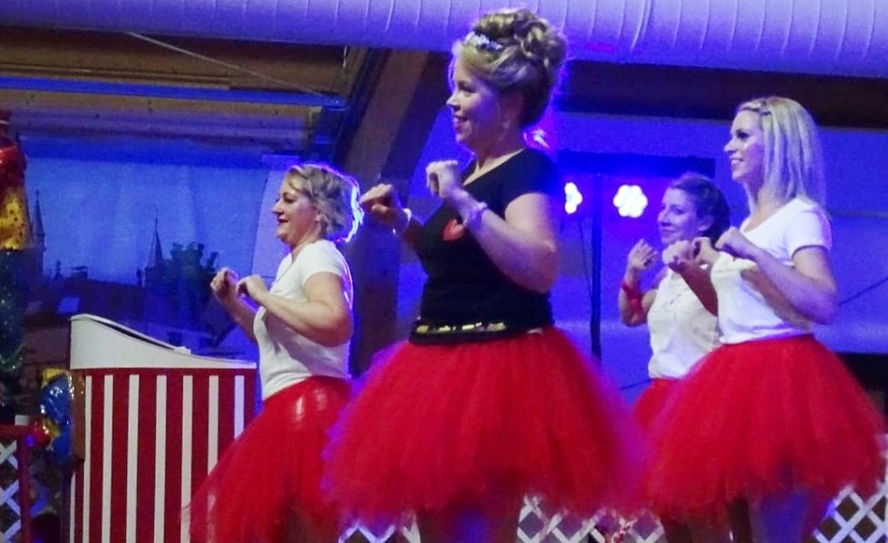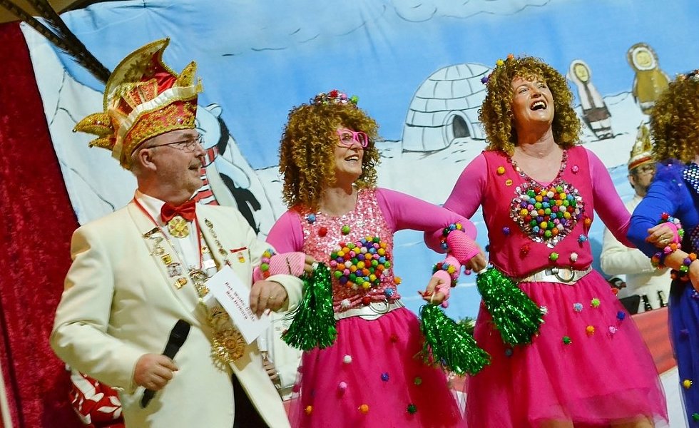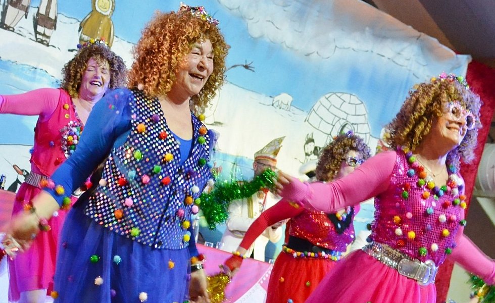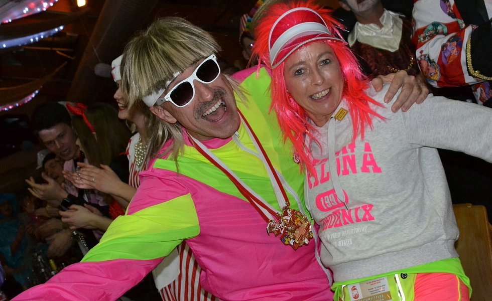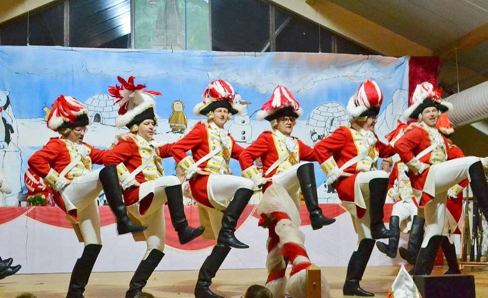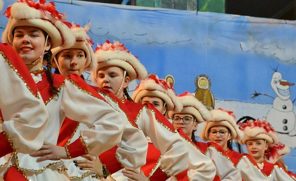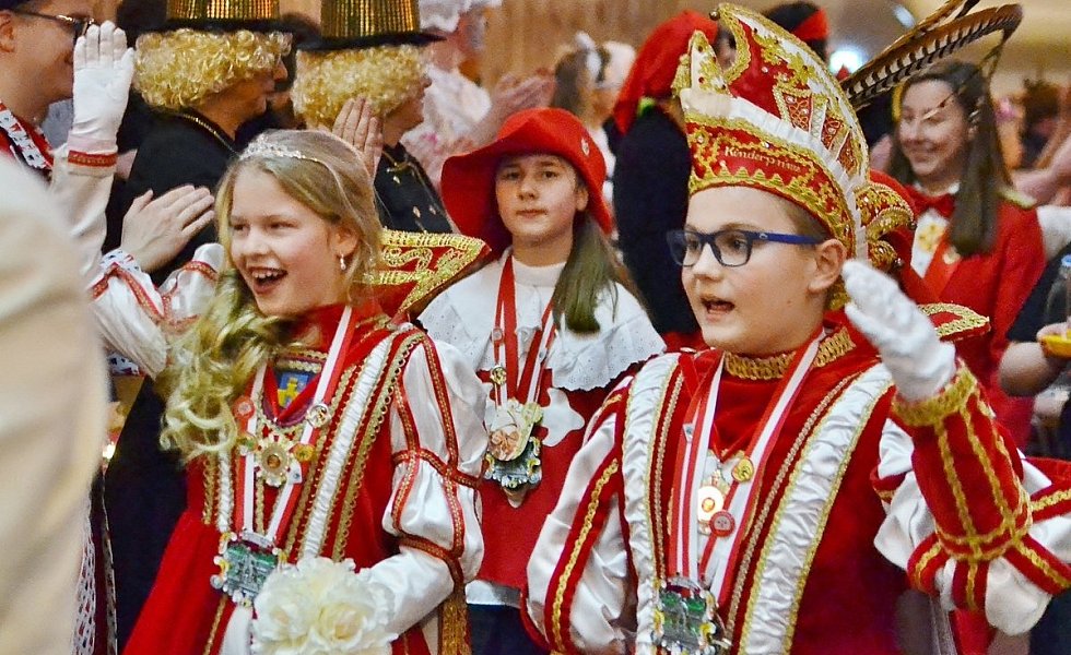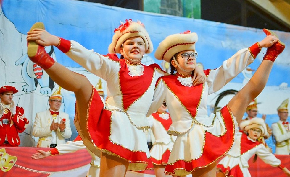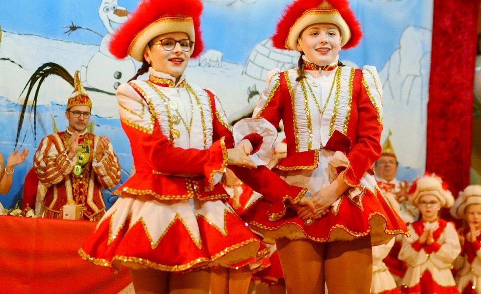 Die Kinderprinzen-Ehrengarde, die das Programm mit ihrem Marsch eröffnete, und auch das Tanz-Duo Pia-Marie Ribeiro und Lea Dück brauchten das Publikum gar nicht mehr warm zu tanzen. Das hatten die teilweise bis zur Unkenntlichkeit kostümierten Karnevalsfans in der Anonymität des närrischen Gewandes bei dem einen oder anderen Gläschen Sekt, kühlem Gerstensaft oder süßen Schnäpschen bereits selbst erledigt.