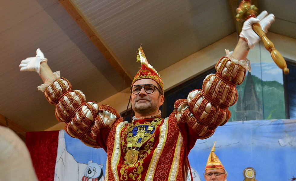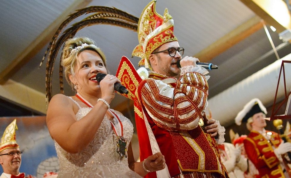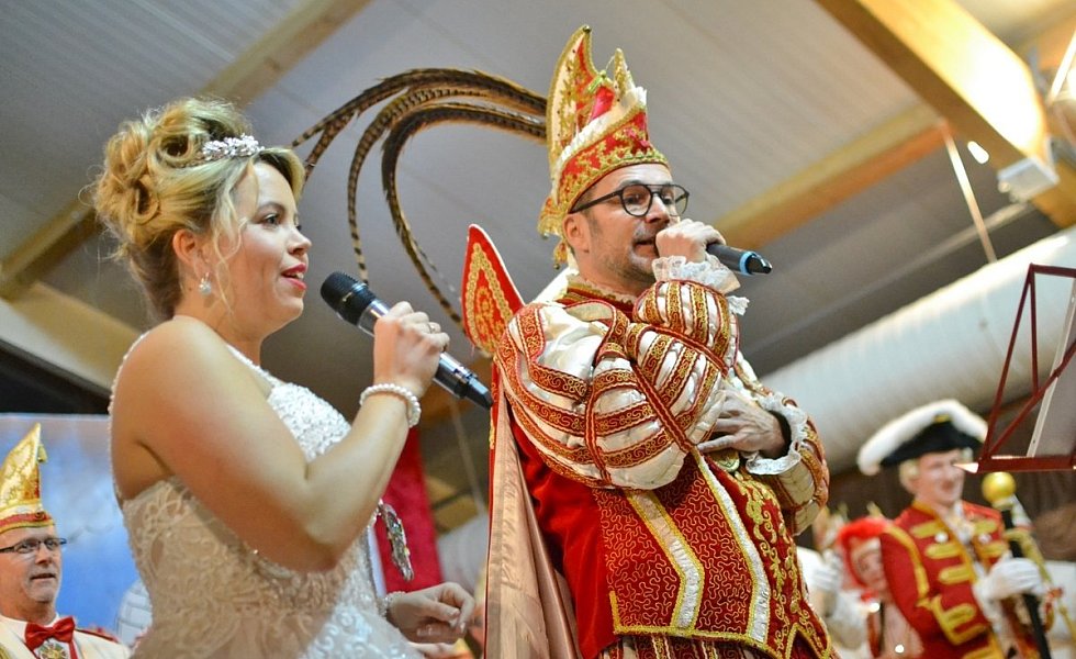 Auf seine Frage, wie lange Prinz Jürgen II. und seine als charmante Champagnerflasche verkleidete Lebensgefährtin Verena Mikus denn schon verheiratet wären, und die Antwort seiner Tollität „noch gar nicht, aber das kann sich heute Abend ja vielleicht noch ändern", folgten minutenlange „Antrag, Antrag"-Rufe aus dem Publikum.