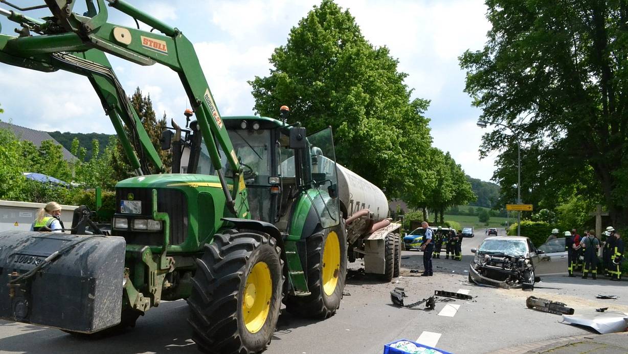 Spektakulärer Unfall: Auto prallt bei Bad Driburg auf Güllefass