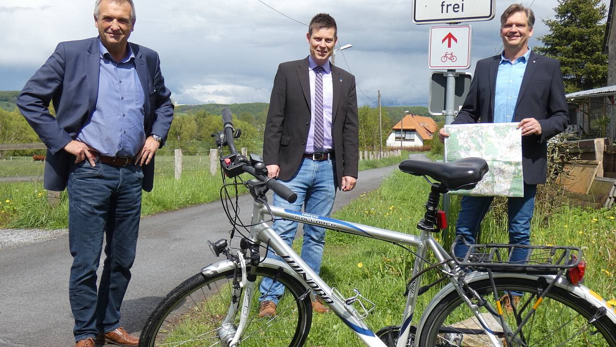 Stellen die Planungen für das neue Radwegekonzept vor (von li.): Bürgermeister Burkhard Deppe, Beigeordneter Michael Scholle, Fachbereichsleiter Roland Forner | © Stadt Bad Driburg/ Heinz-Jörg Wiegand