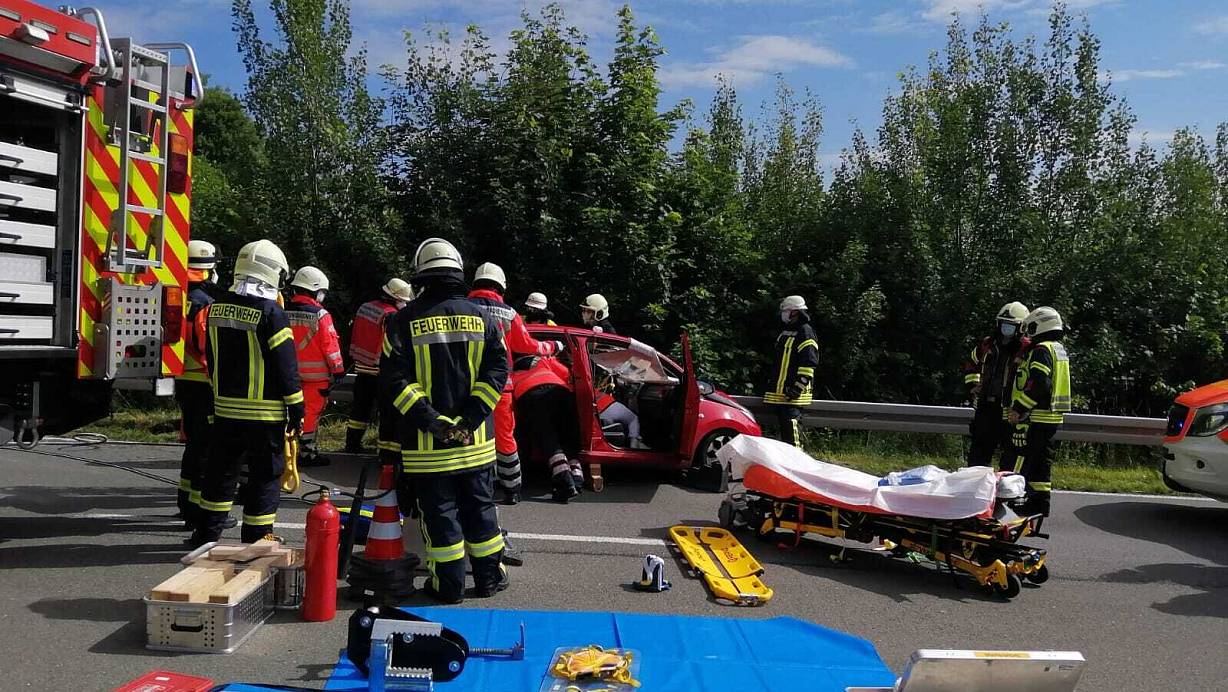 Rettungskräfte mussten die schwer verletzte Frau aus ihrem Wagen befreien. | © Burkhard Battran